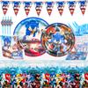 Suministros para fiesta de sonic tema decoración plato de papel vaso de papel inserción de tarjeta para pastel traje de vajilla desechable