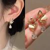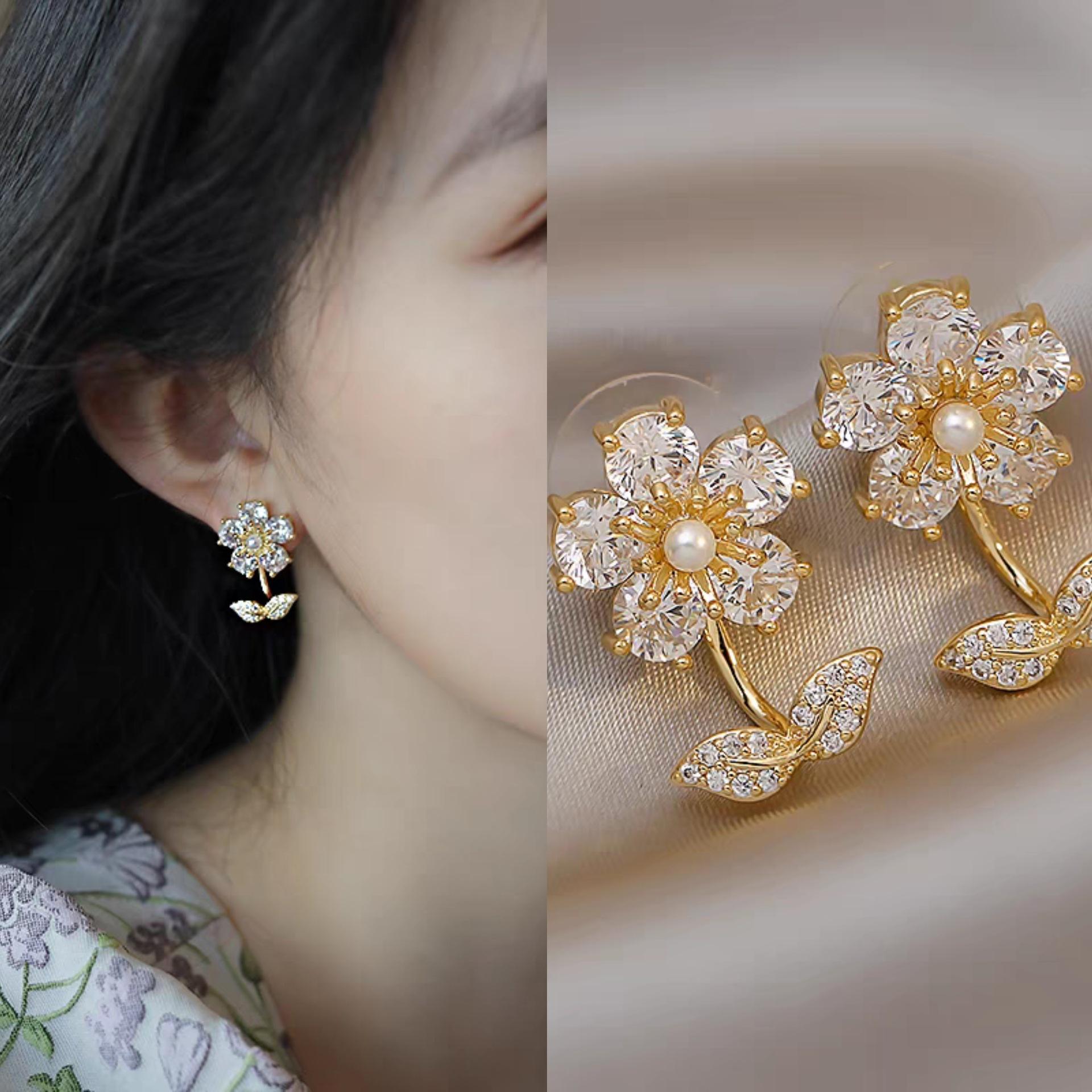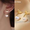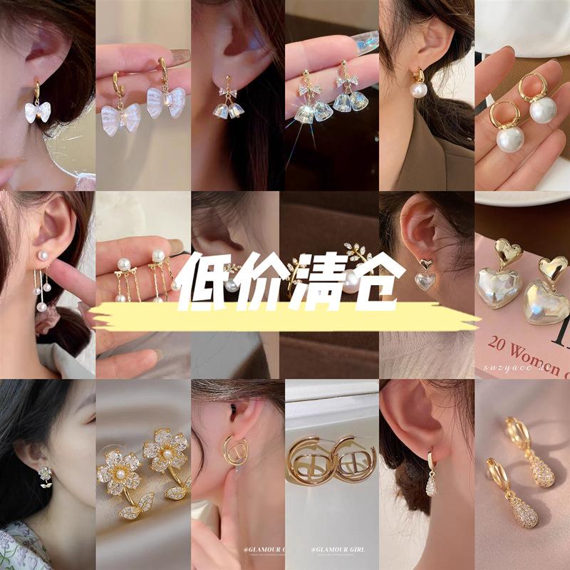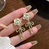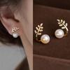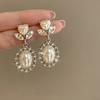 Moda simple versión coreana de aretes de perlas y circonitas para mujer, temperamento versátil de alta gama, aretes diarios para ir al trabajo al por mayor