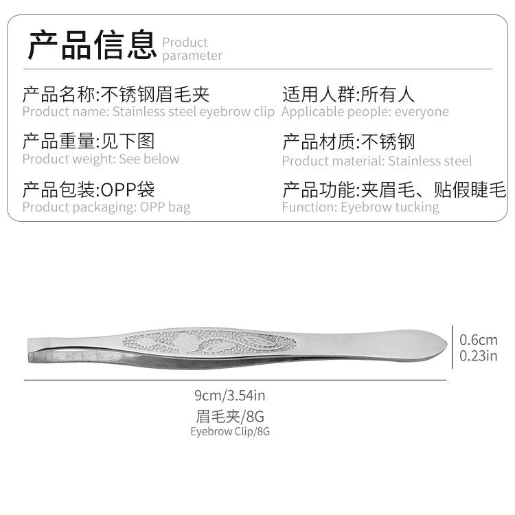 Pinzas para Cejas de Acero Inoxidable Pinza Plana para Cejas Depilación de Barba Pestañas Postizas Clip para Recortar Cejas Herramienta de Maquillaje