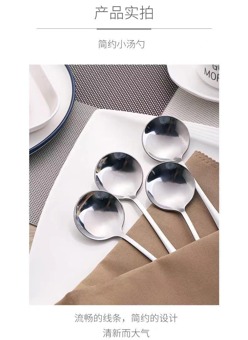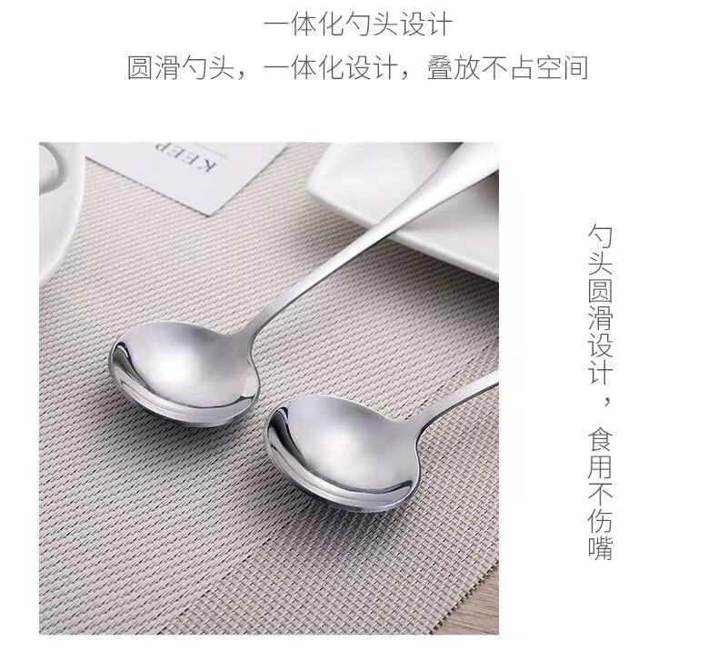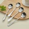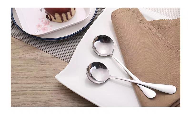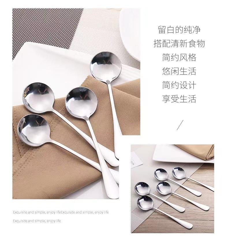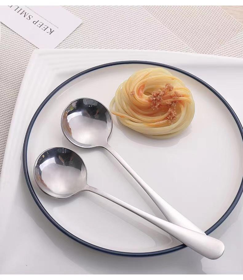 Cuchara Redonda de Acero Inoxidable Engrosado Cuchara para Fruta Cuchara para Sandía Cuchara para Sopa para Adultos y Niños Cuchara para Comida Mango Mediano-largo Cuchara para el Hogar
