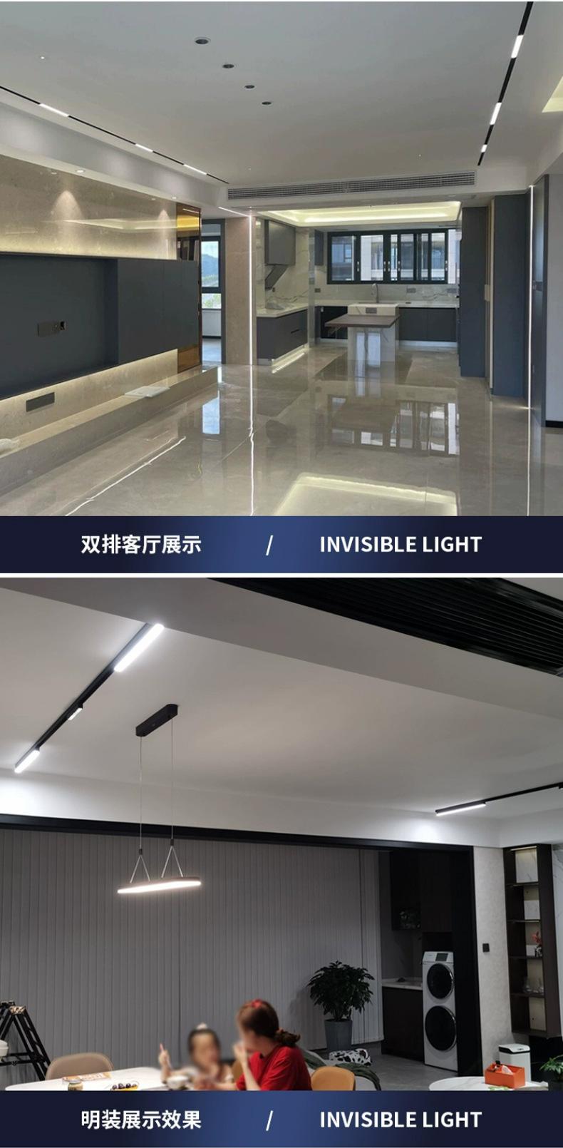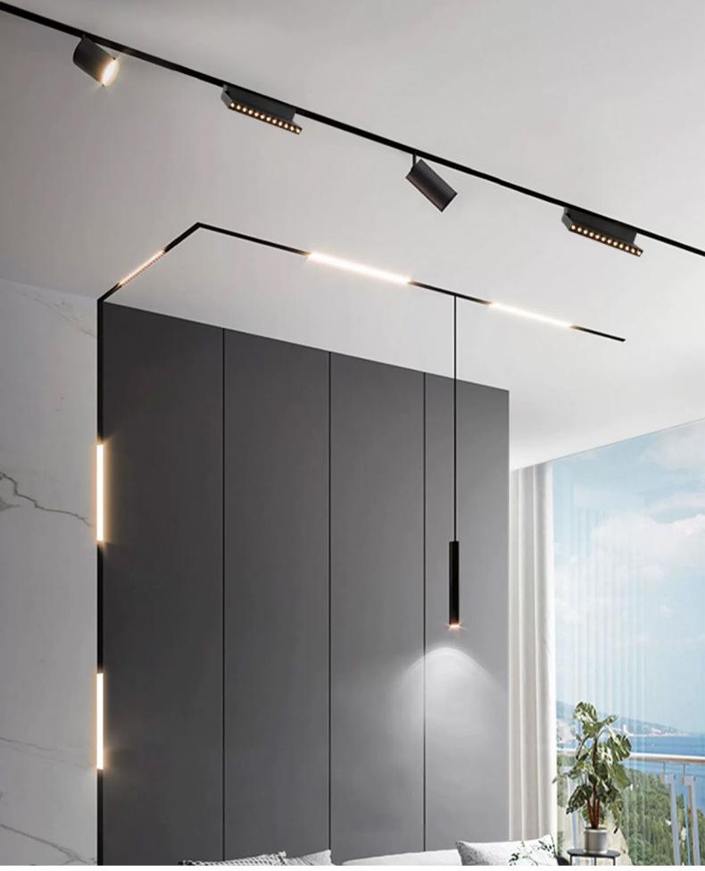 Paquete combinado de diseño de luz de riel magnético sala de estar dormitorio luz sin cabezal iluminación LED lineal empotrada sin marco