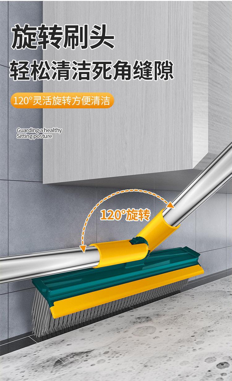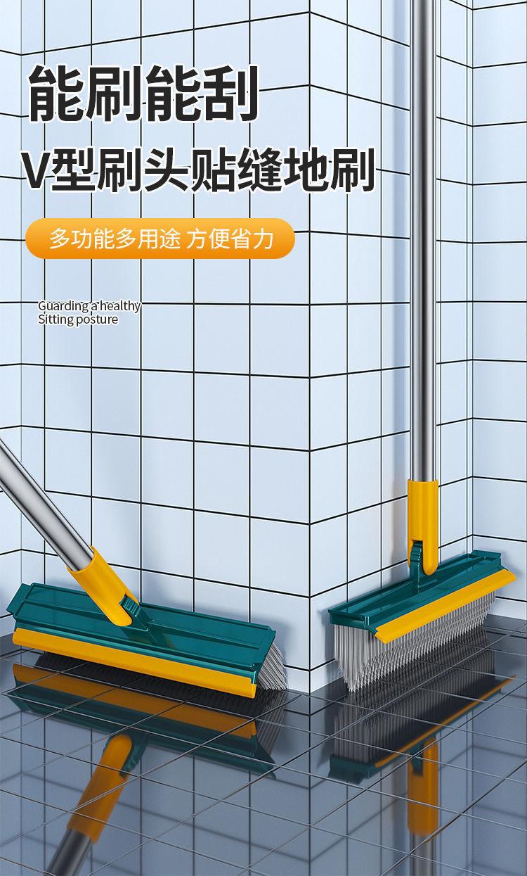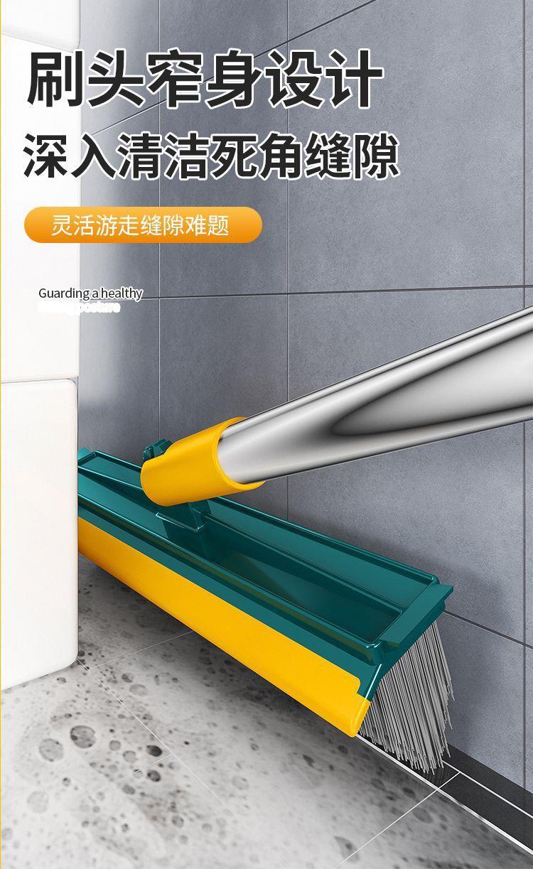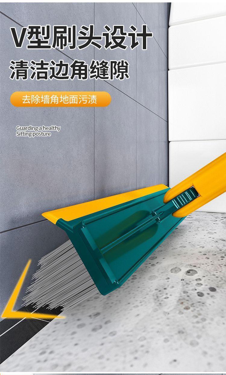 Cepillo para Piso de Baño Dos en Uno con Mango Largo para Limpiar Huecos y Grietas en el Baño, Cepillo Limpiador de Inodoro sin Esquinas Muertas, Cepillo Rascador de Doble Propósito