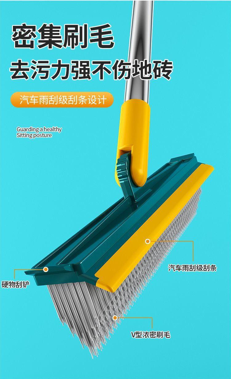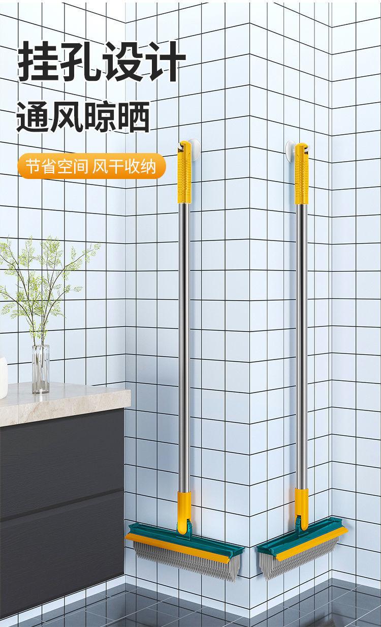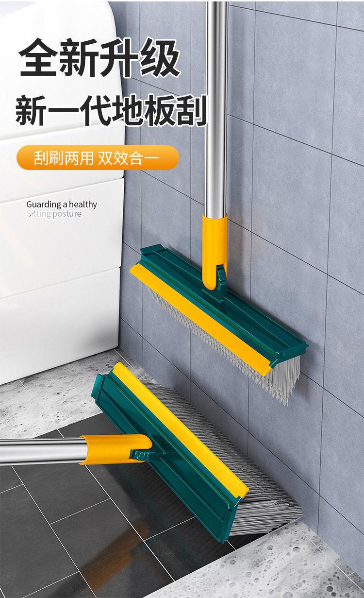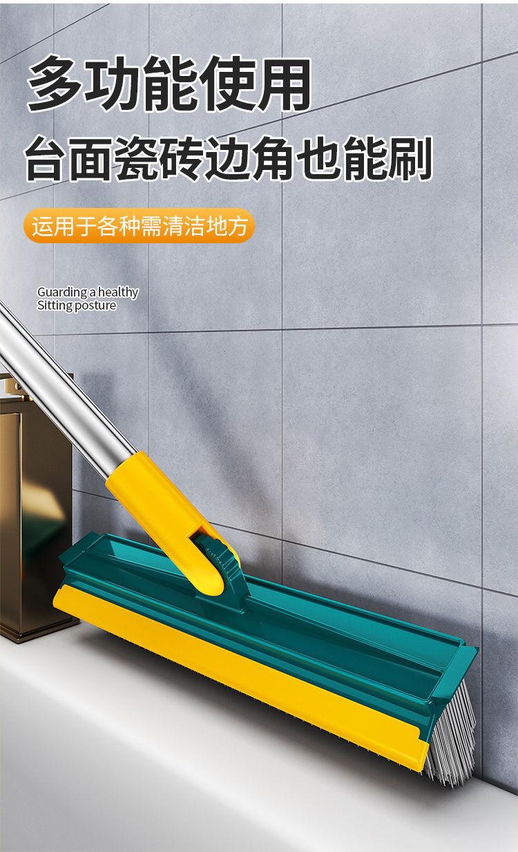 Cepillo para Piso de Baño Dos en Uno con Mango Largo para Limpiar Huecos y Grietas en el Baño, Cepillo Limpiador de Inodoro sin Esquinas Muertas, Cepillo Rascador de Doble Propósito