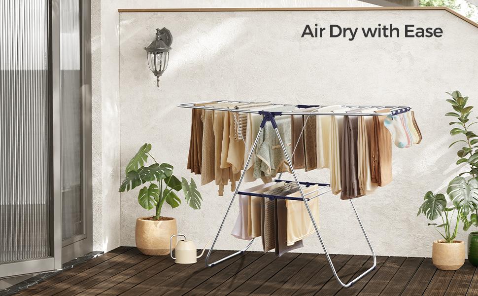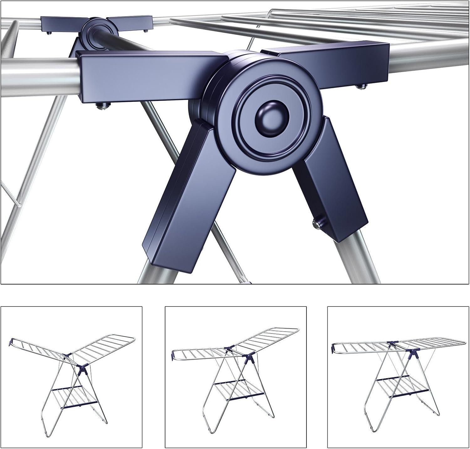 Tendedero de Balcón para el Hogar para Secar Edredones y Toallas, Tendedero de Piso Plegable de Acero Inoxidable para Ropa de Bebé con Alas