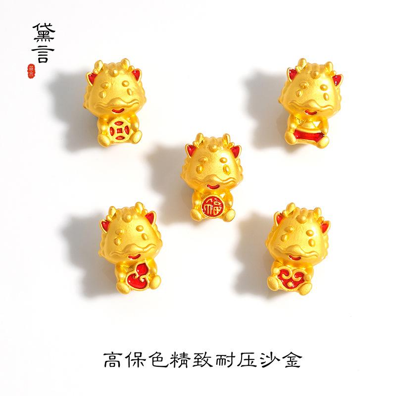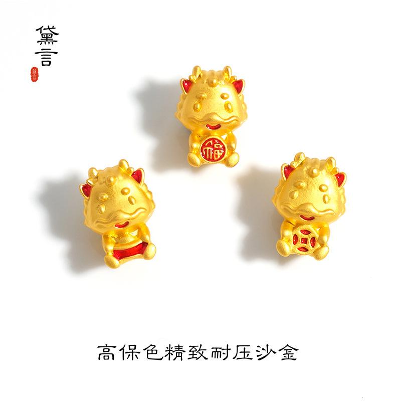 Oro Aluvial Doce Signos del Zodíaco Cinco Bendiciones DIY Lingote Ruyi Fulu Pulsera de Dinero Cuentas Separadas Año del Dragón Tesoro del Dragón Accesorios de Joyería