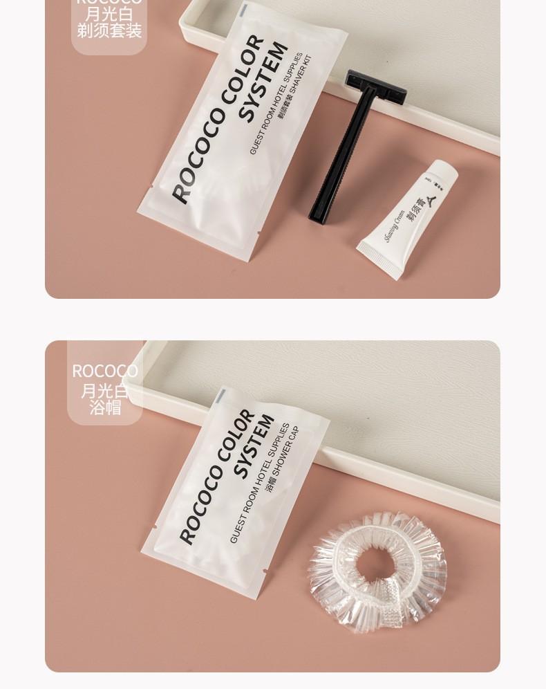 Disposable slippers, Disposable shower cap, Disposable soap, Disposable razor, Disposable toothbrush, Disposab...