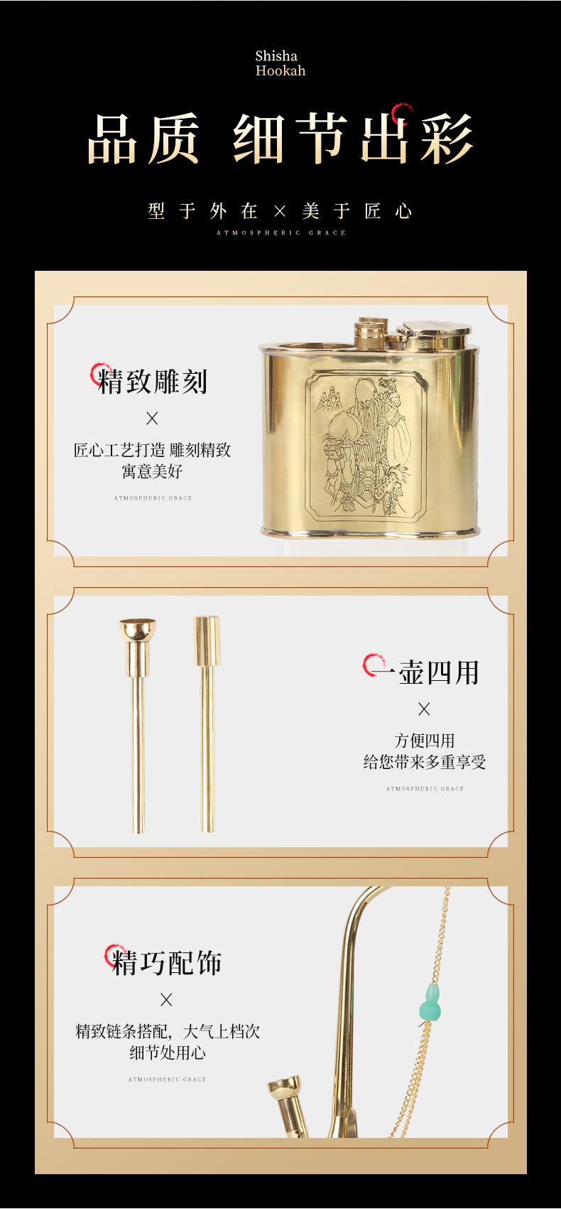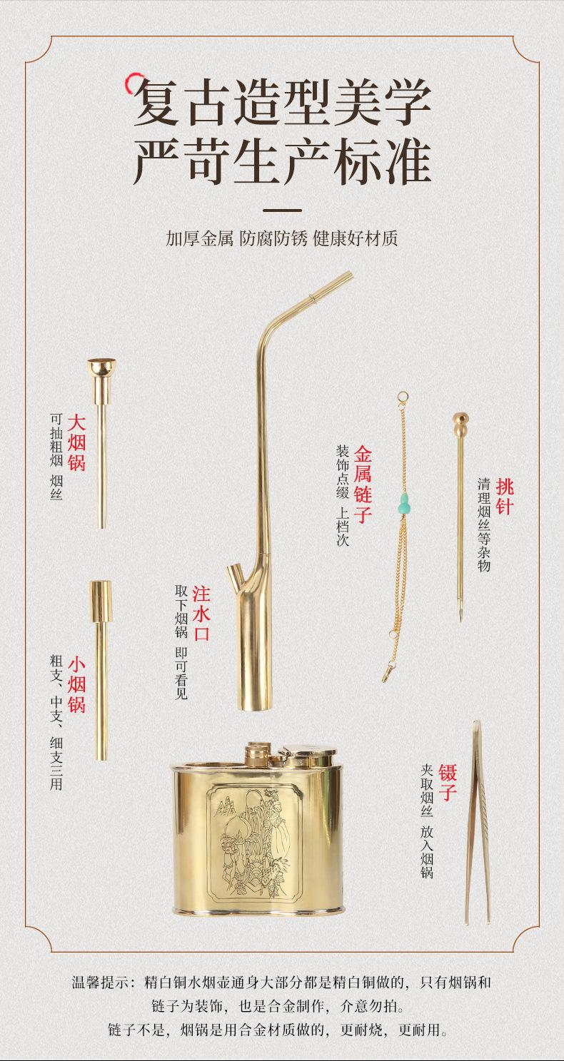 Narguile de Cobre Retro Portátil Caja de Regalo Narguile con Filtro Engrosado Narguile de Cobre Anticuado Fabricante de Lotes de Narguile de Triple Propósito