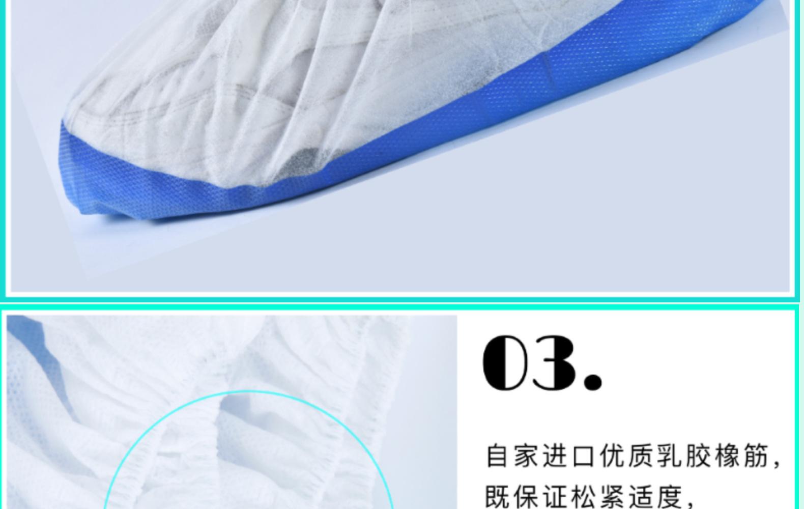 Cubrezapatos desechable azul y blanco no tejido personalizado de fábrica para el hogar, exterior, estudiantes, sala de computación, cubierta para pies al por mayor