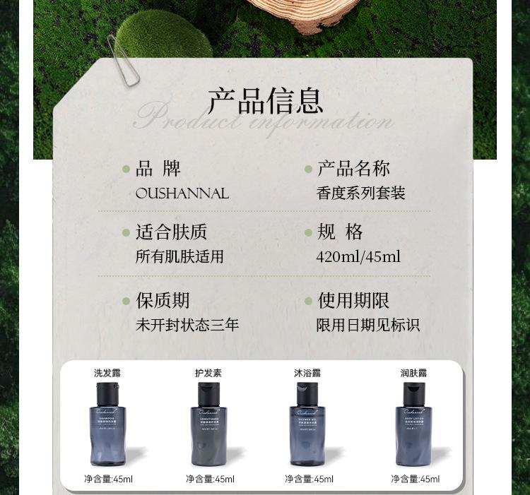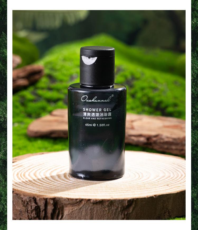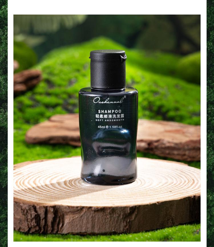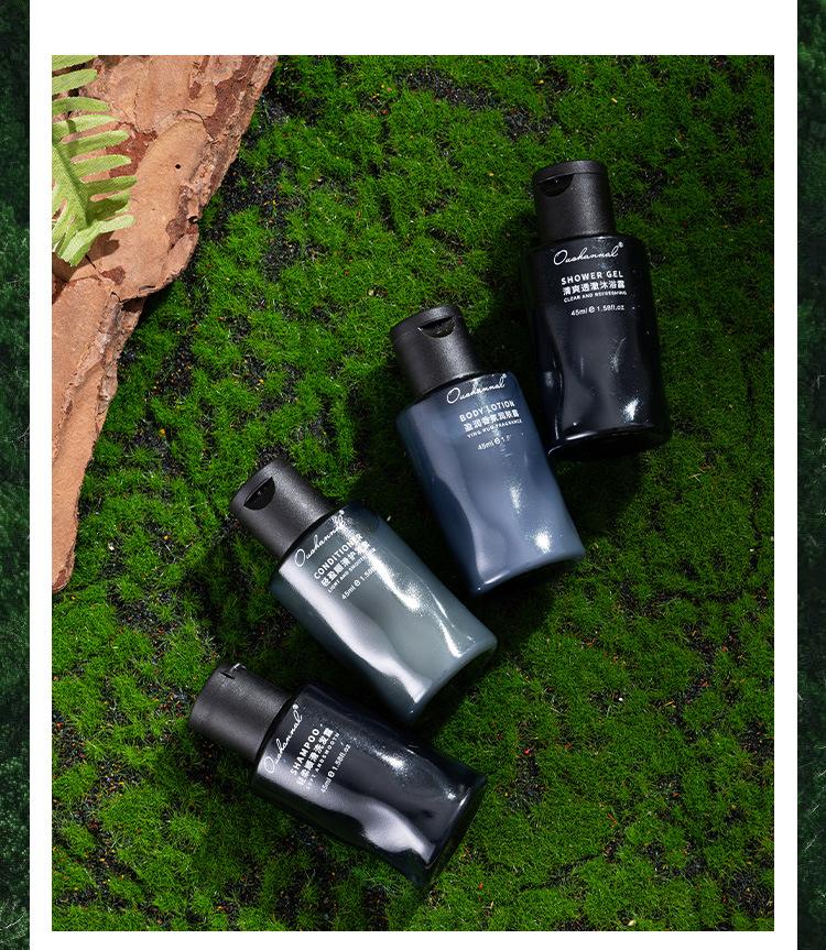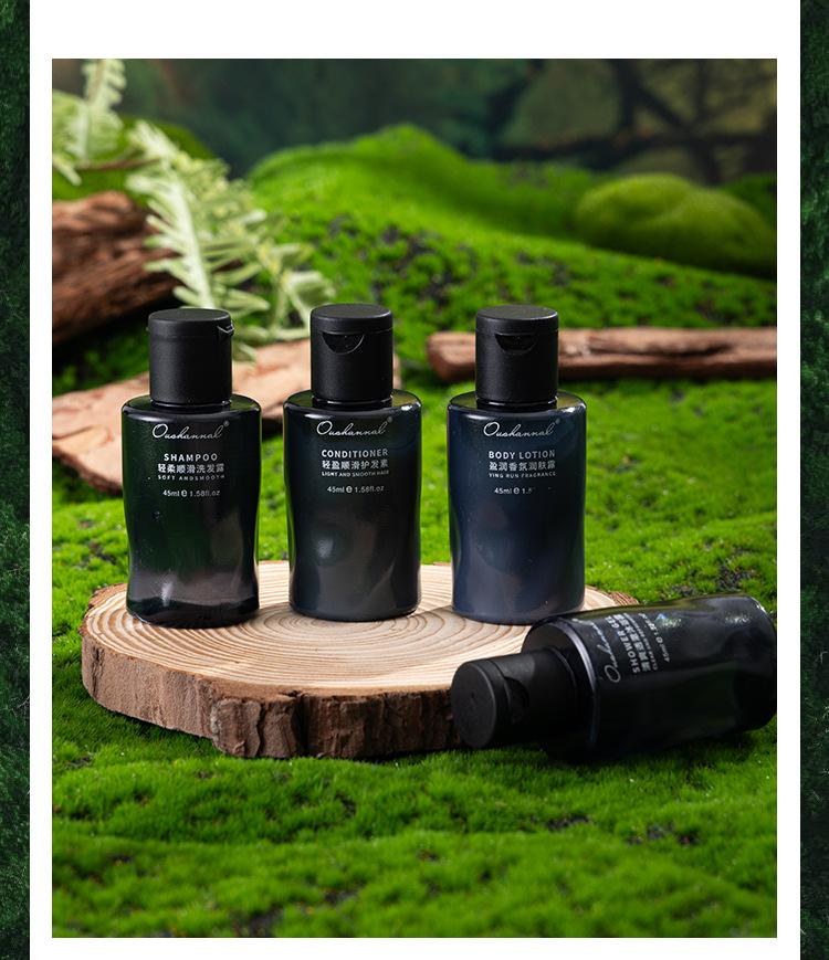 Shampoo 45ml, Shower gel 45ml, Conditioner 45ml, Moisturizing lotion 45ml, Shampoo 45ml bottle