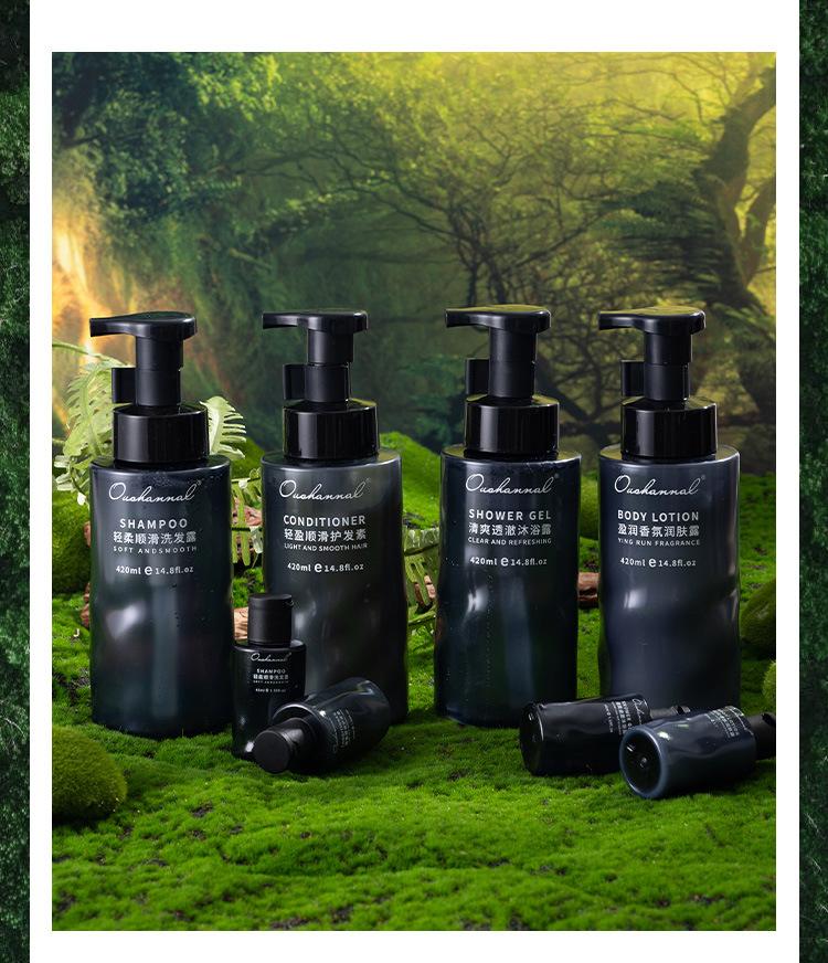 Champú y Gel de Ducha de Hotel Artículos de Aseo Desechables Botellas Pequeñas Artículos de Aseo y Set de Ducha de Hotel B&B Personalización