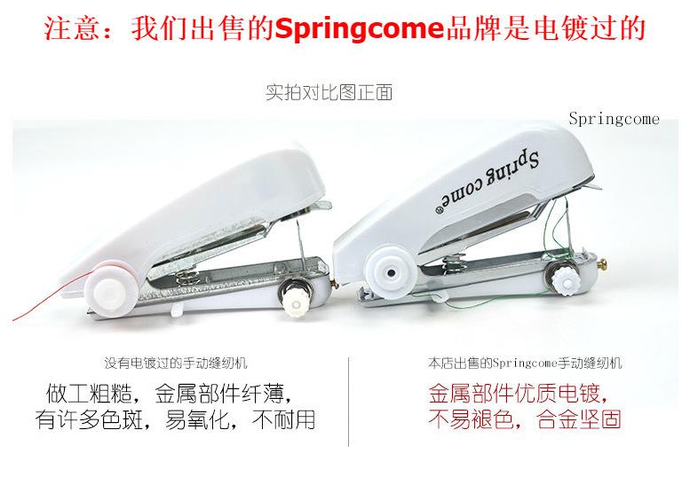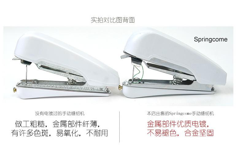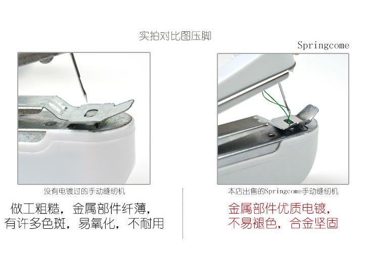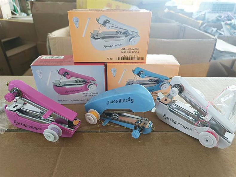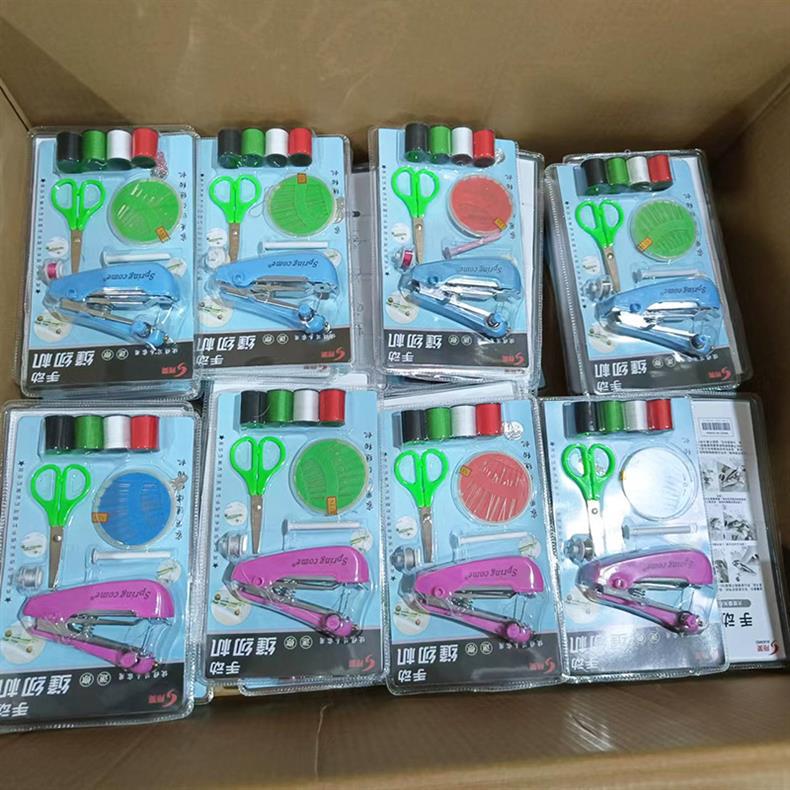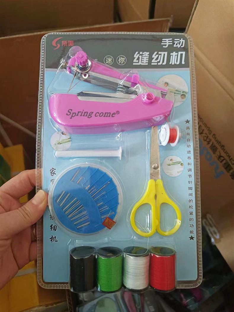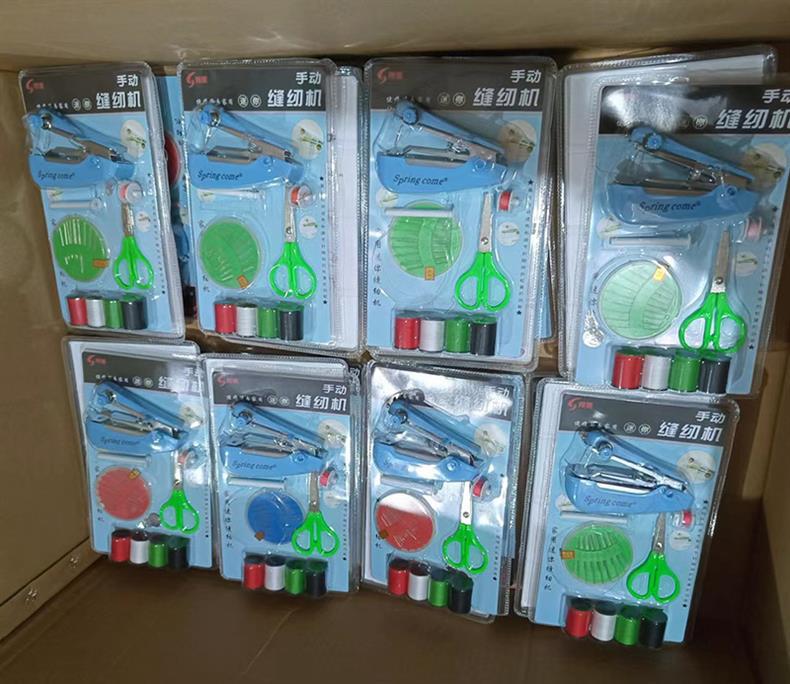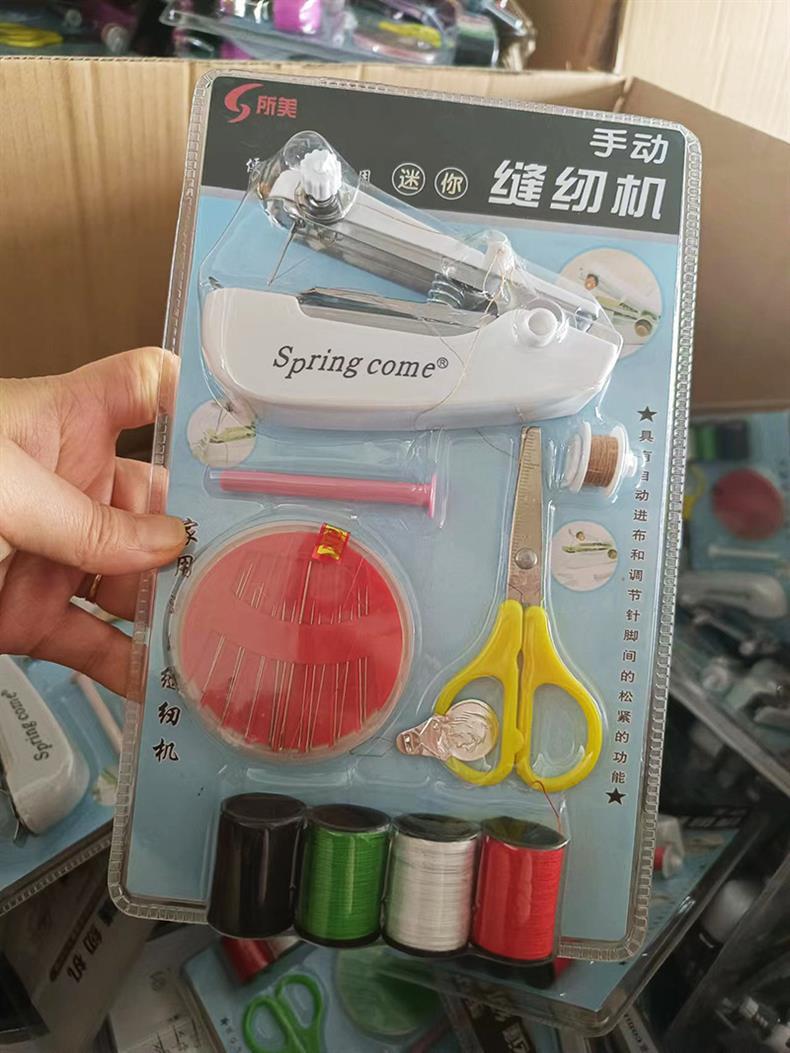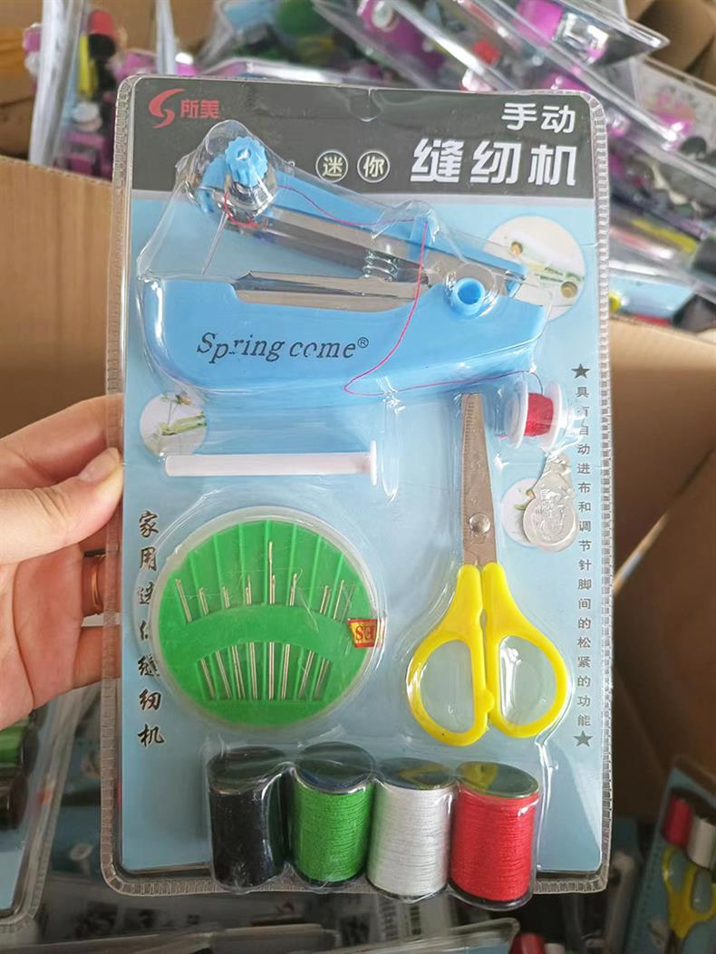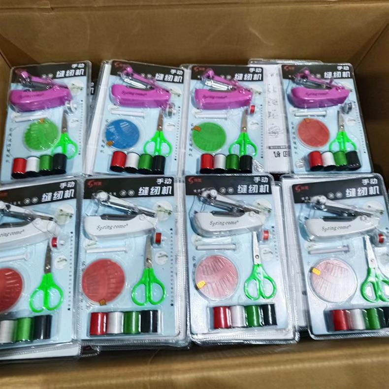 Nota: El color del producto se basa en el color de la máquina de coser pequeña, y el color de los accesorios interiores es aleatorio--el color de las tijeras y la placa de aguja generalmente será cualquiera de estos colores: azul, amarillo, rojo, verde. Los colores de los carretes de hilo (negro, verde, blanco, rojo) son fijos.