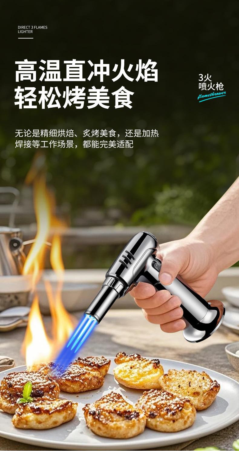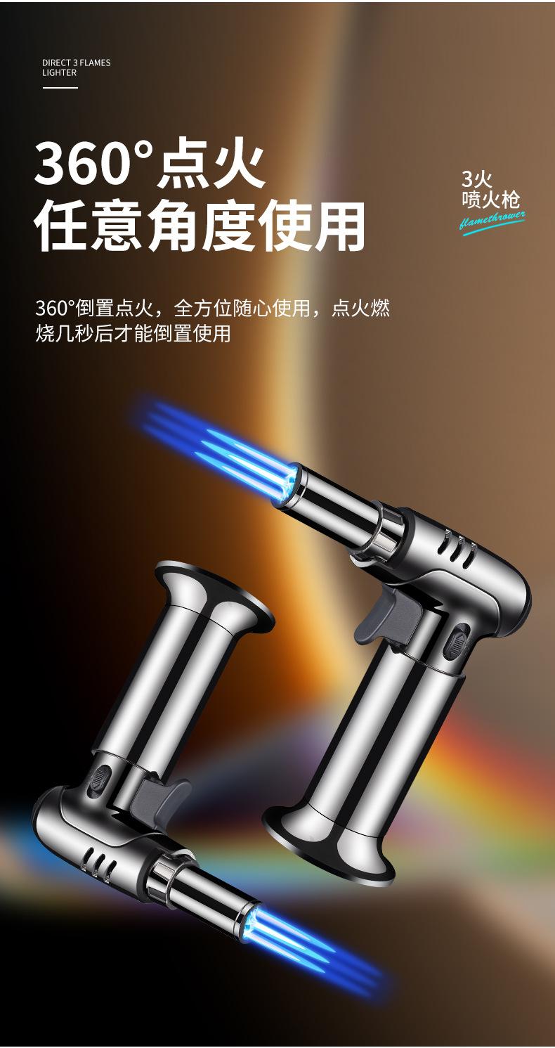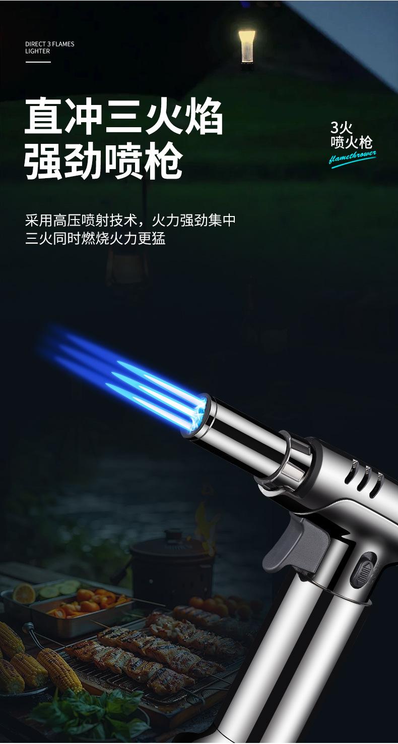 Nueva Pistola de Llama Directa de Tres Cabezales para Varitas y Conos de Incienso, Encendedor Portátil a Prueba de Viento para Cocina al Aire Libre y Barbacoa, Llama Potente
