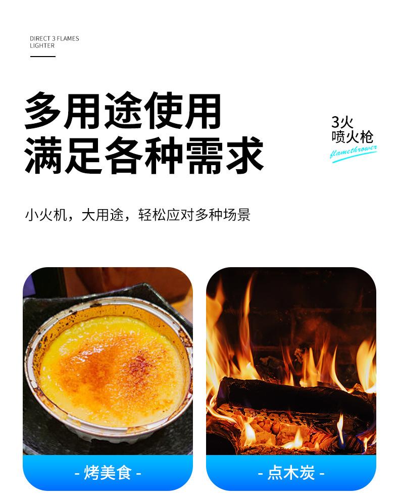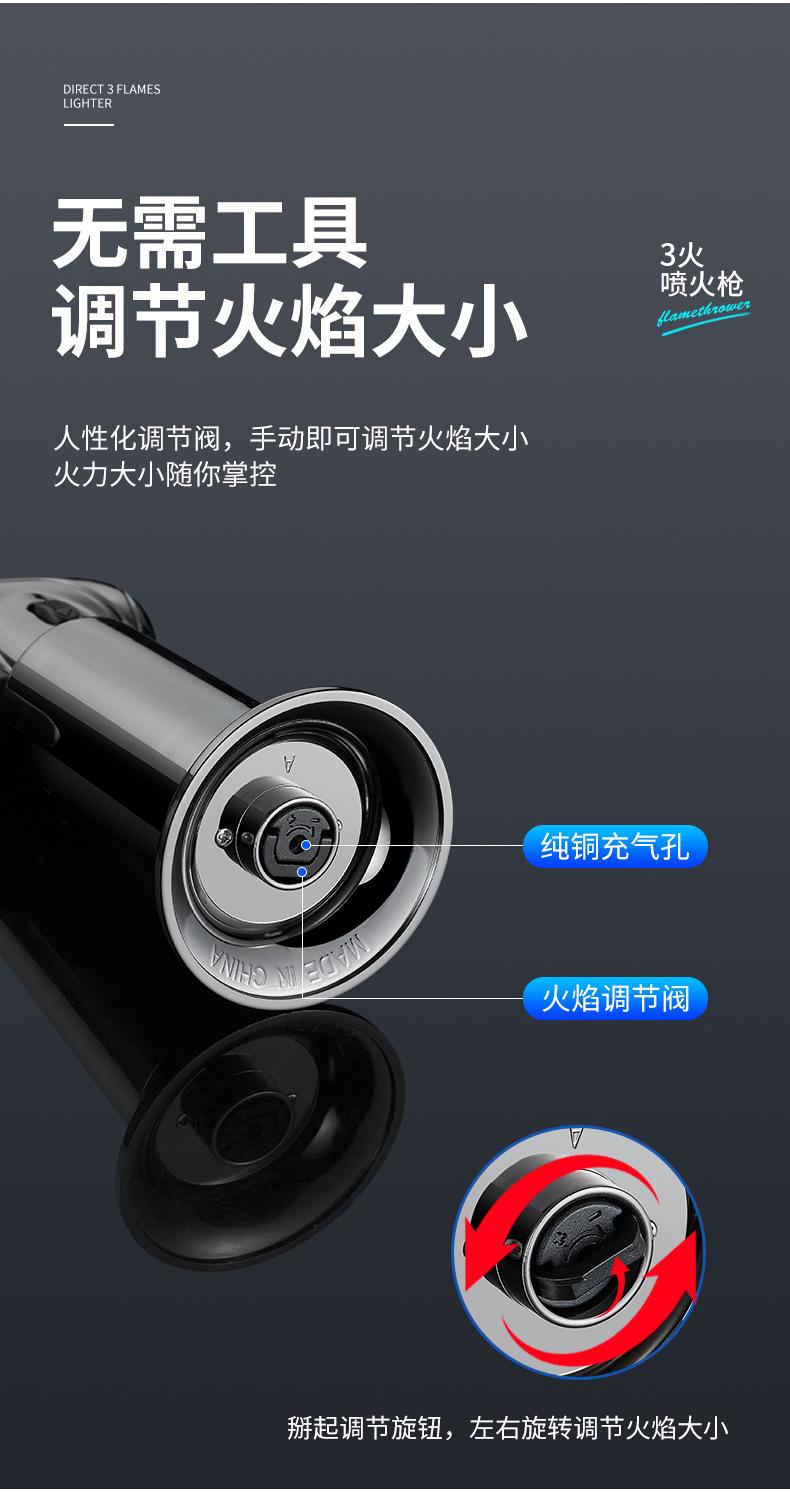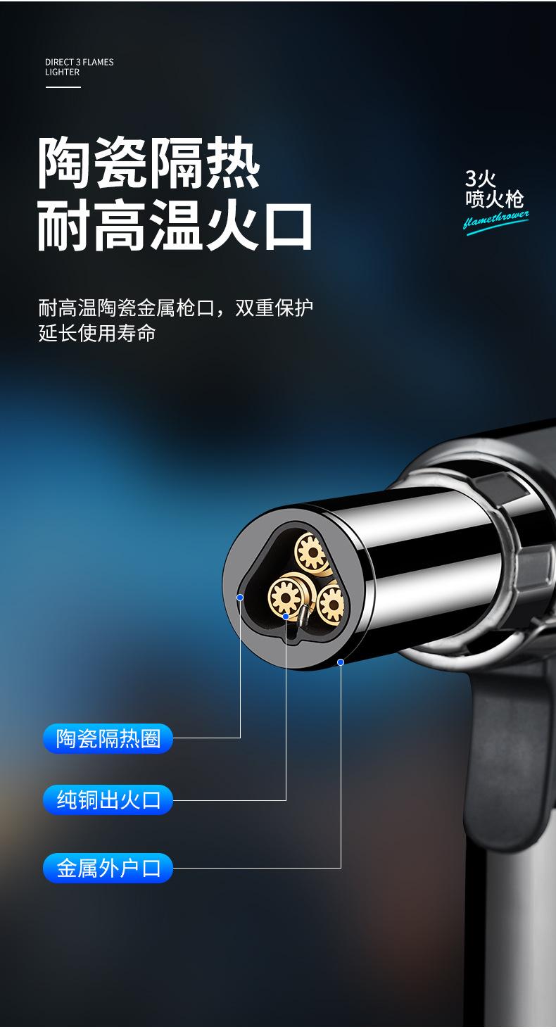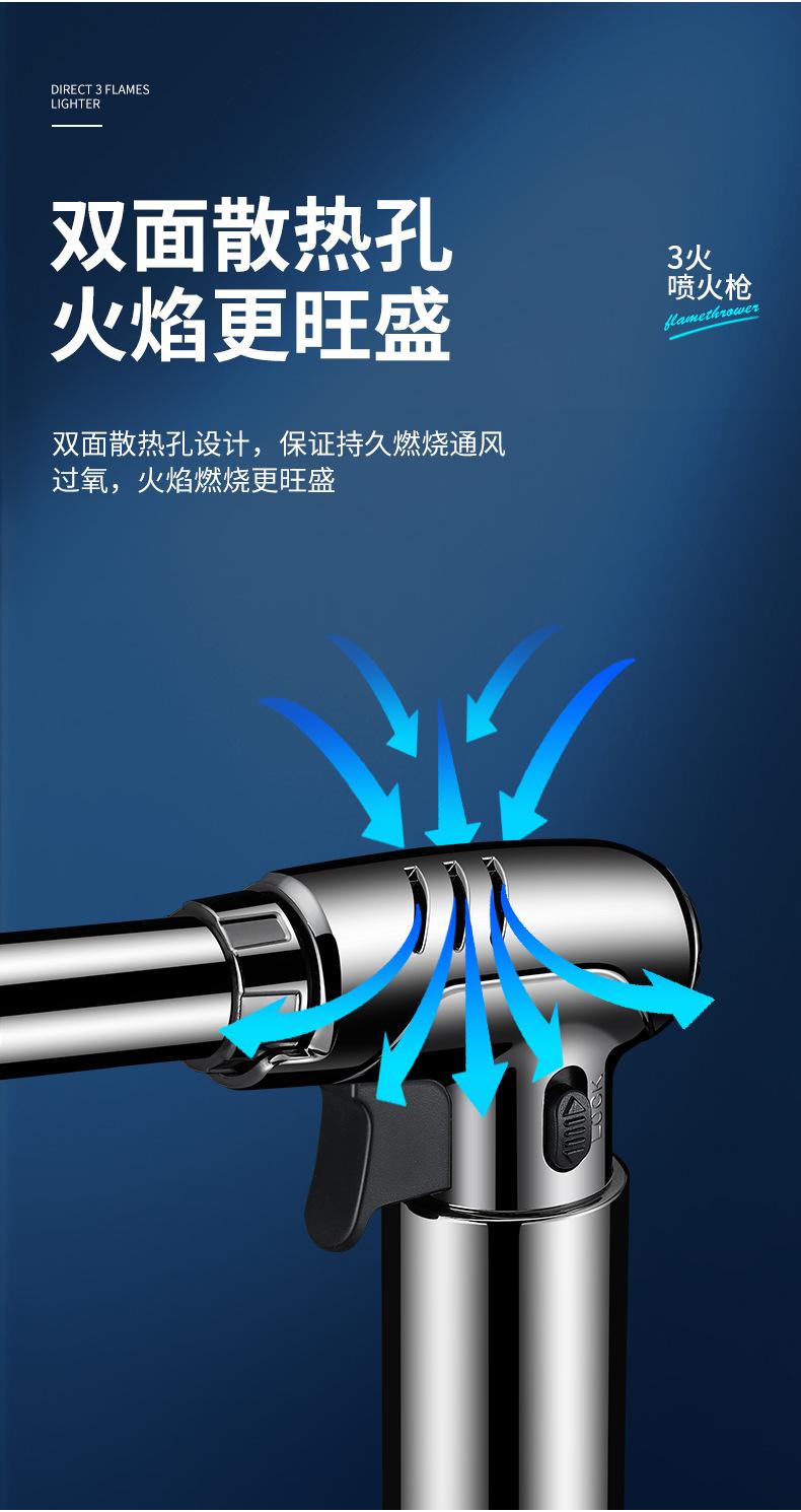Nueva Pistola de Llama Directa de Tres Cabezales para Varitas y Conos de Incienso, Encendedor Portátil a Prueba de Viento para Cocina al Aire Libre y Barbacoa, Llama Potente
