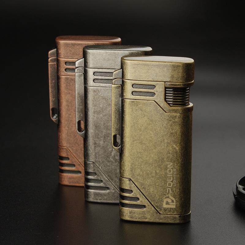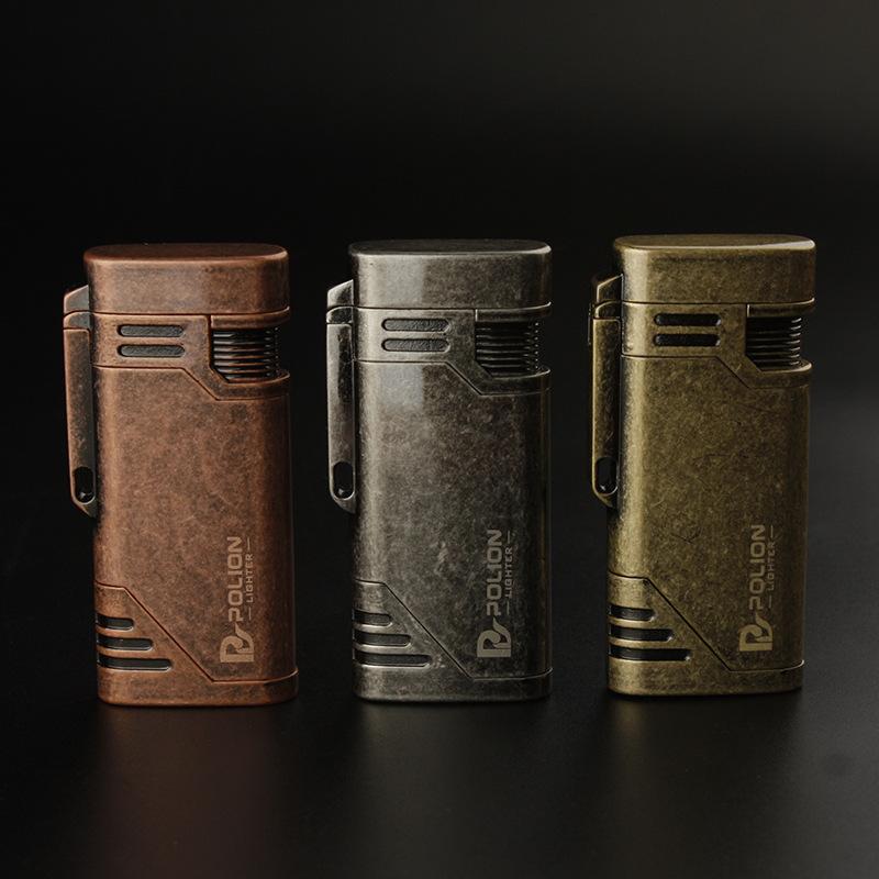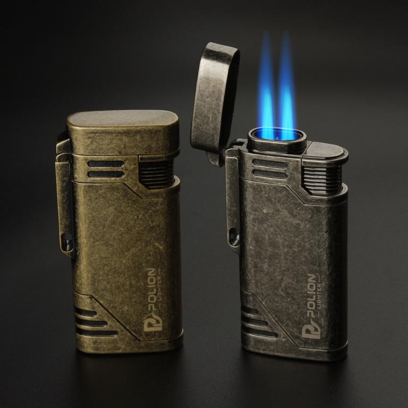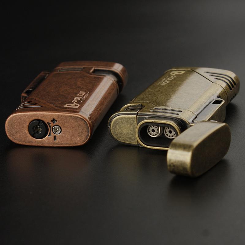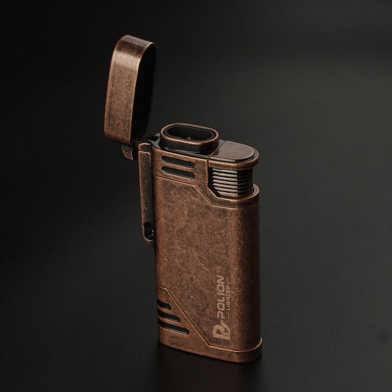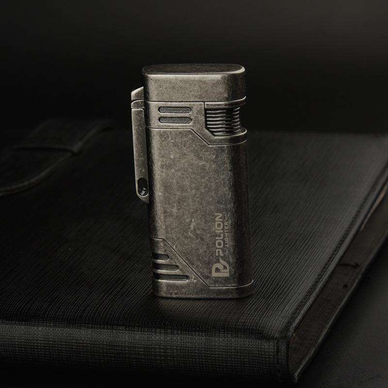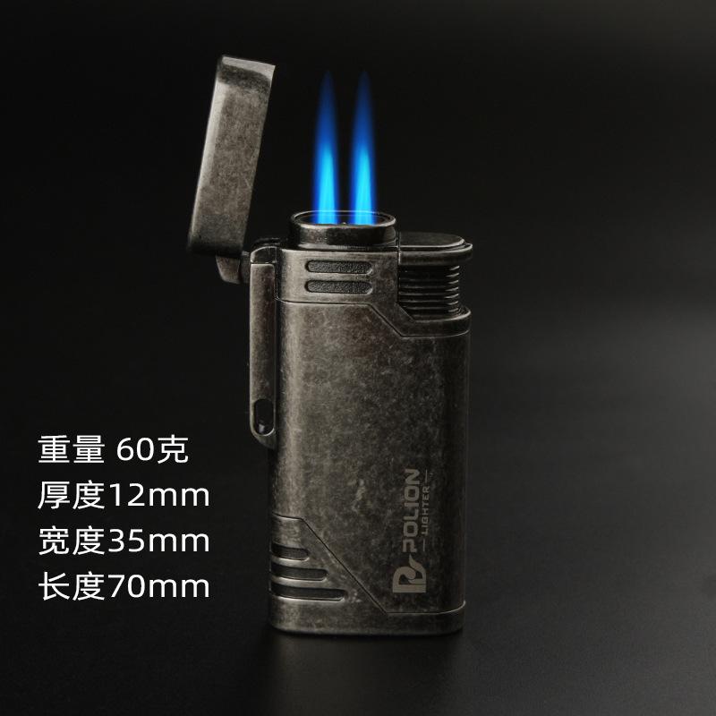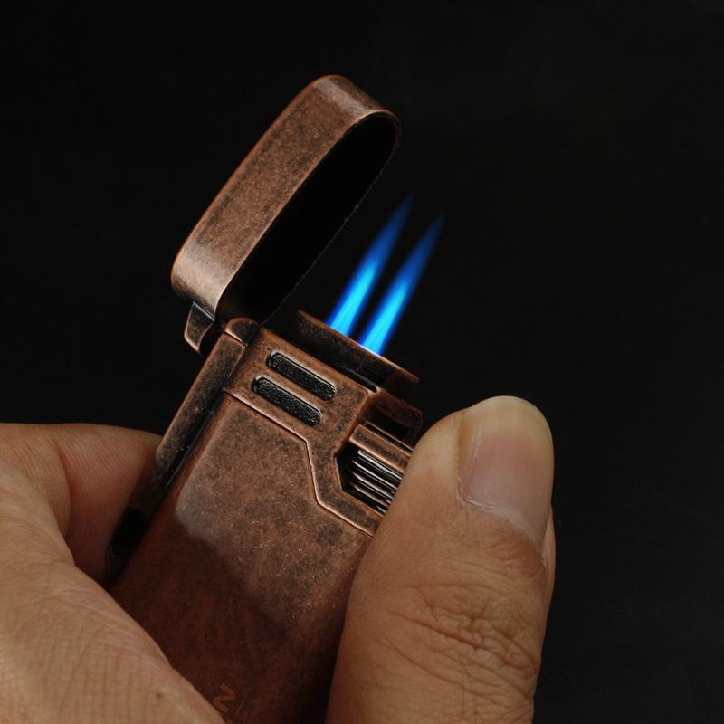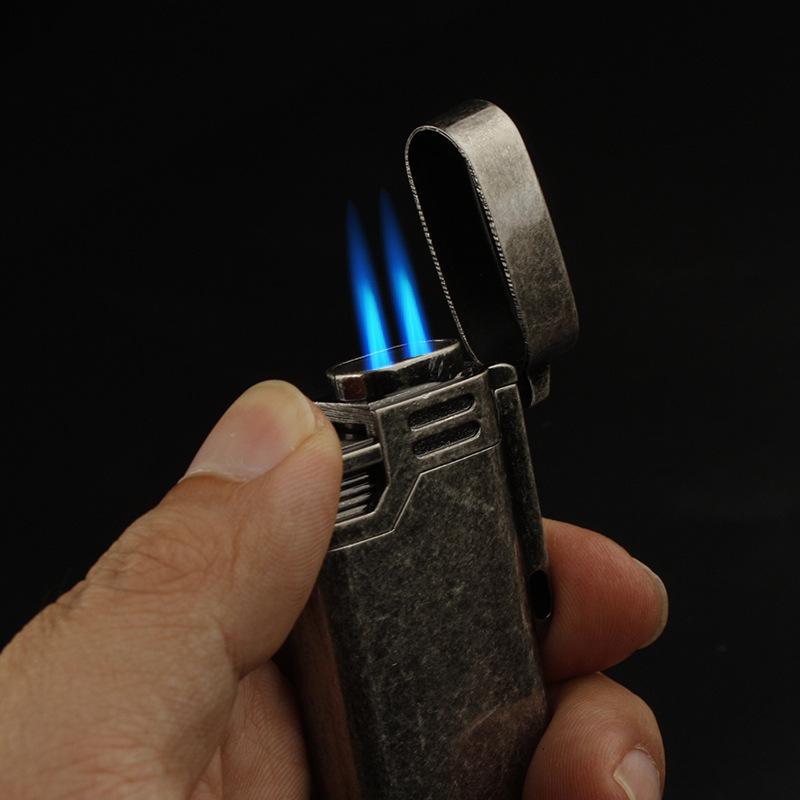 Encendedor inflable a prueba de viento de doble golpe directo metal moleteado artesanía personalidad creativa metal transfronterizo caliente al por mayor