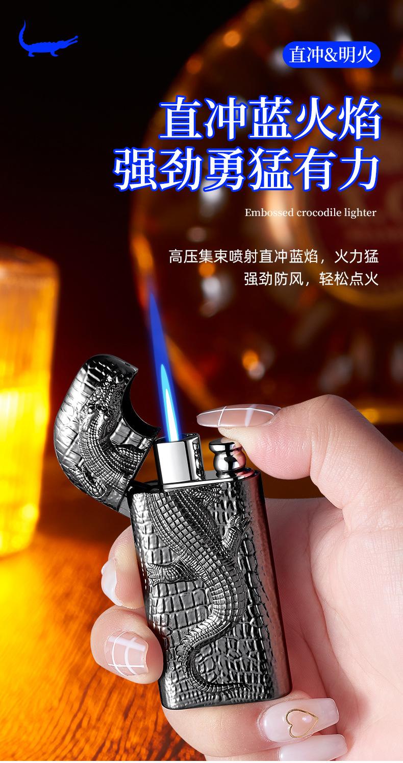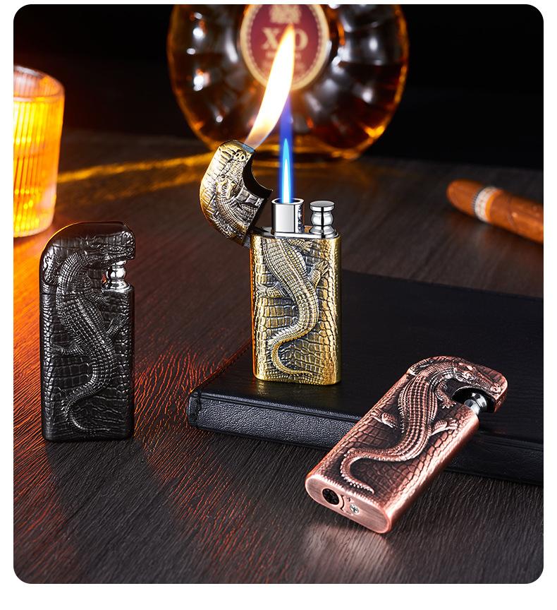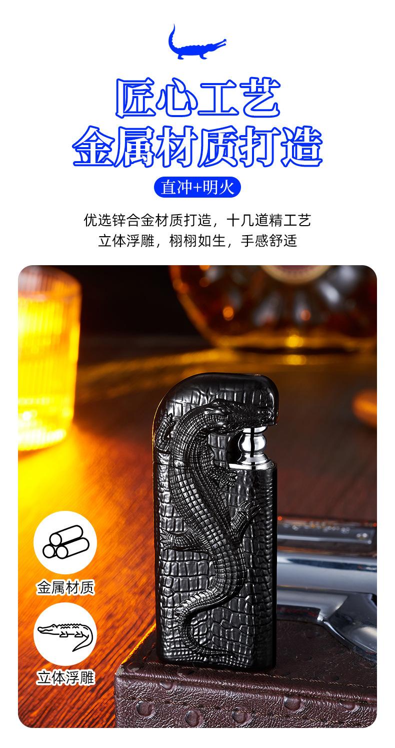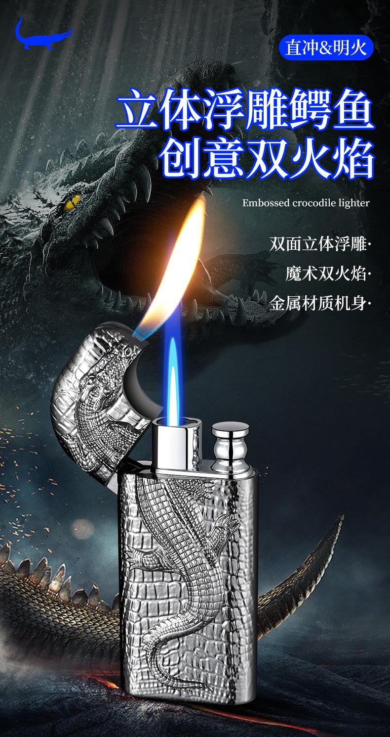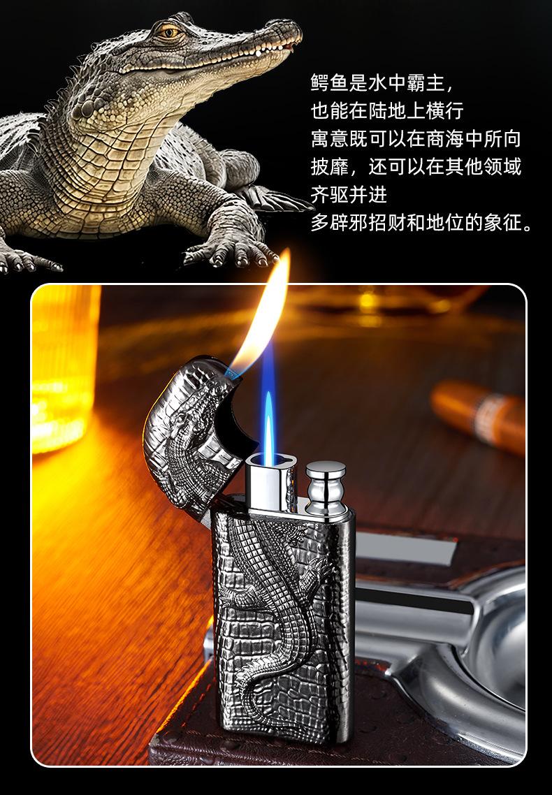 Encendedor inflable de metal con forma de cocodrilo en relieve tridimensional creativo, doble fuego, perforación directa, conversión a fuego abierto, encendedor de regalo para hombres