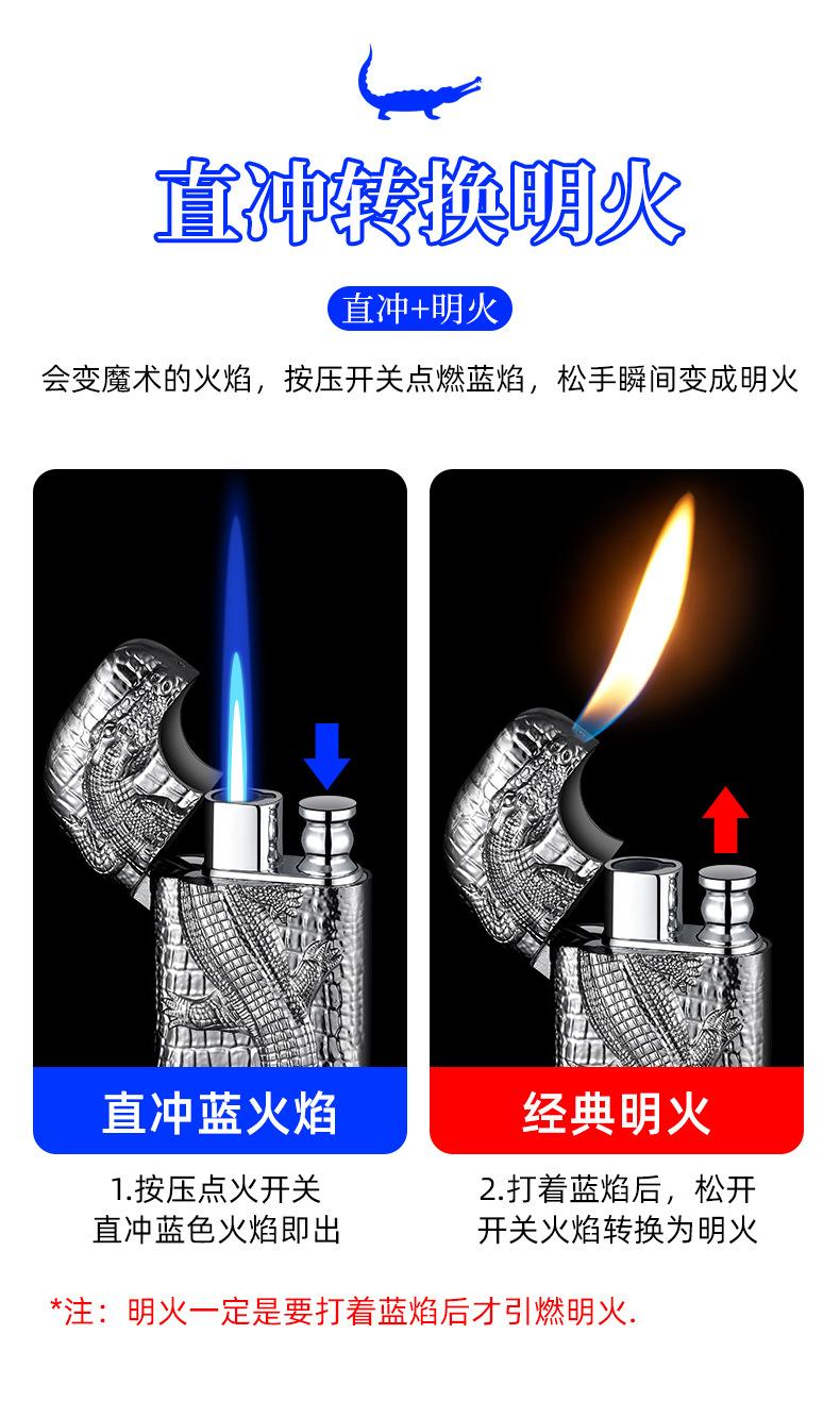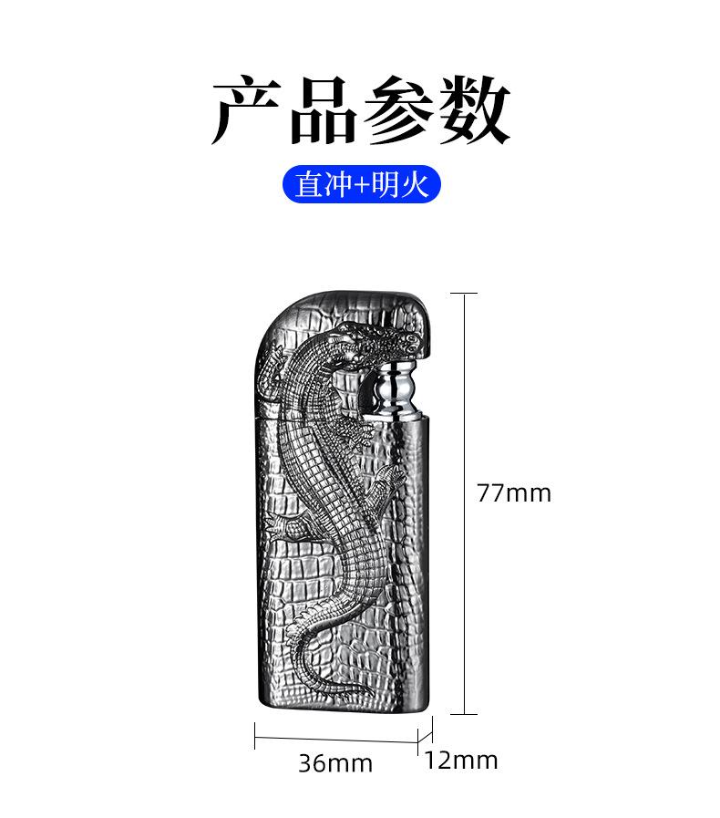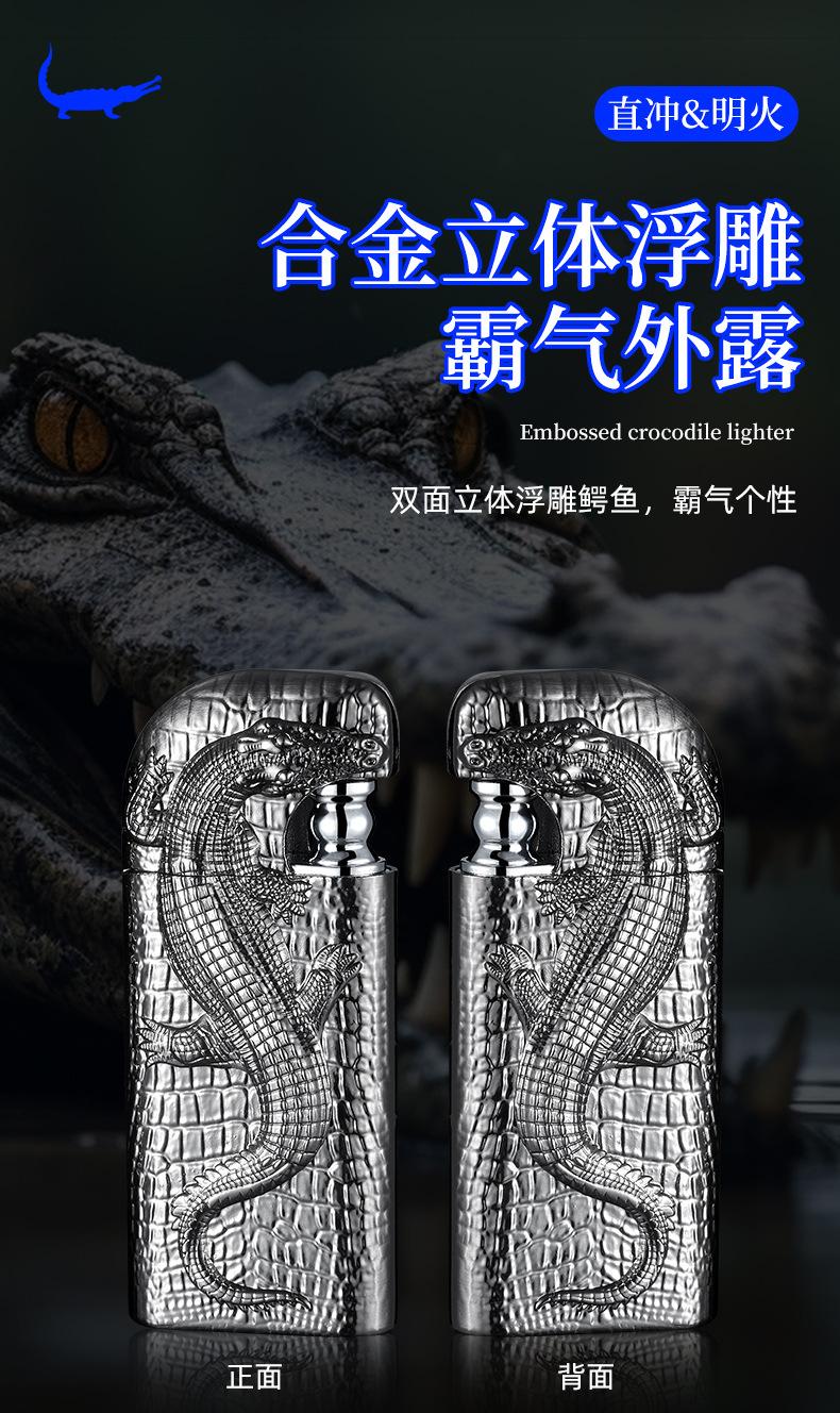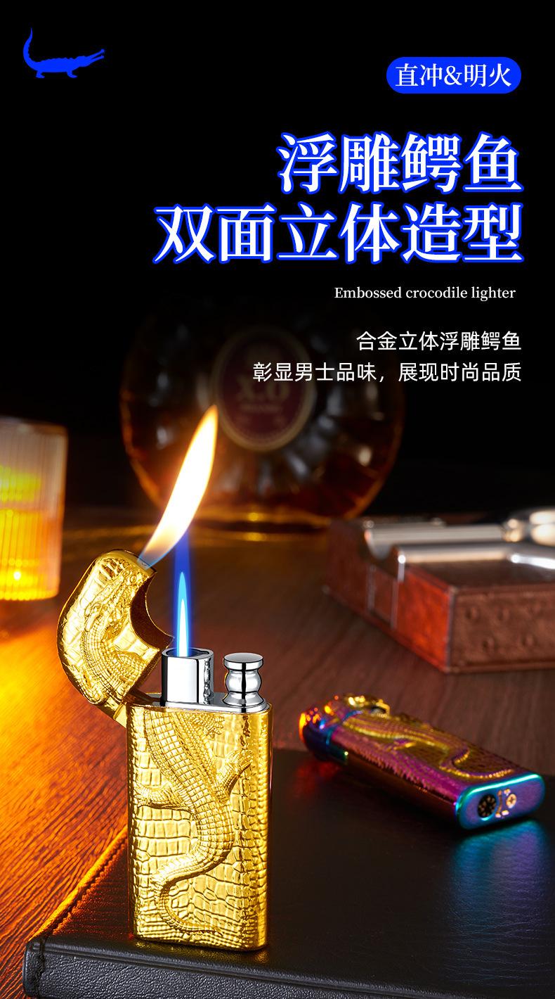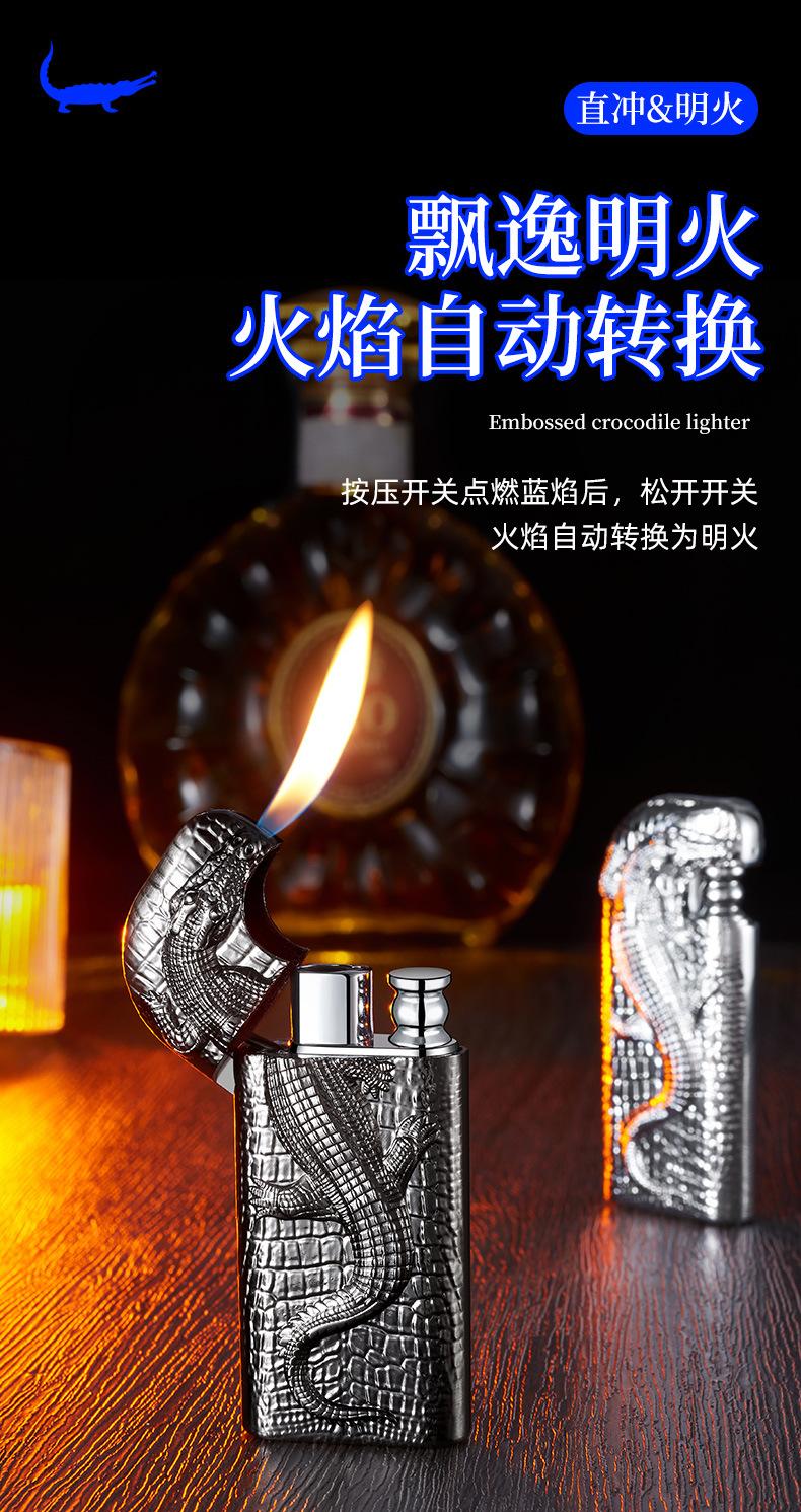 Encendedor inflable de metal con forma de cocodrilo en relieve tridimensional creativo, doble fuego, perforación directa, conversión a fuego abierto, encendedor de regalo para hombres
