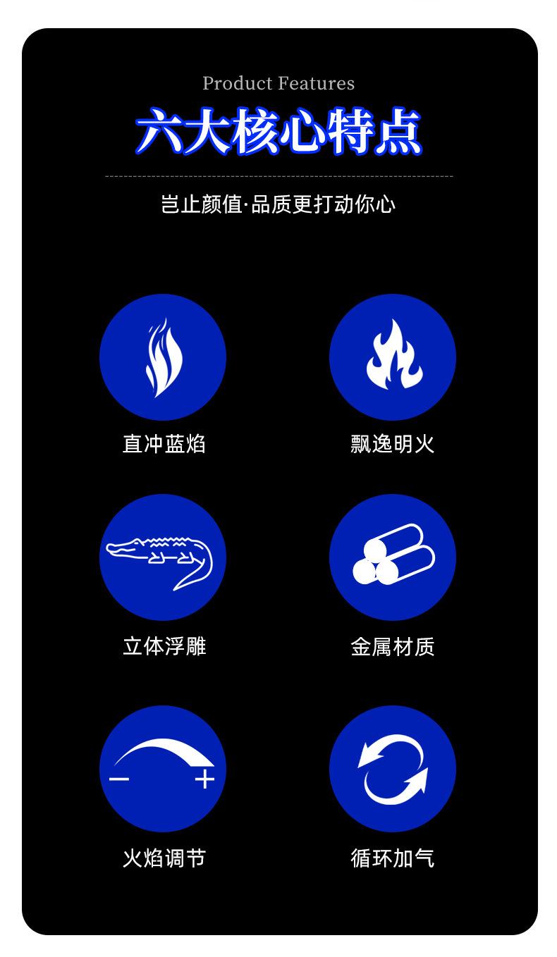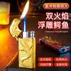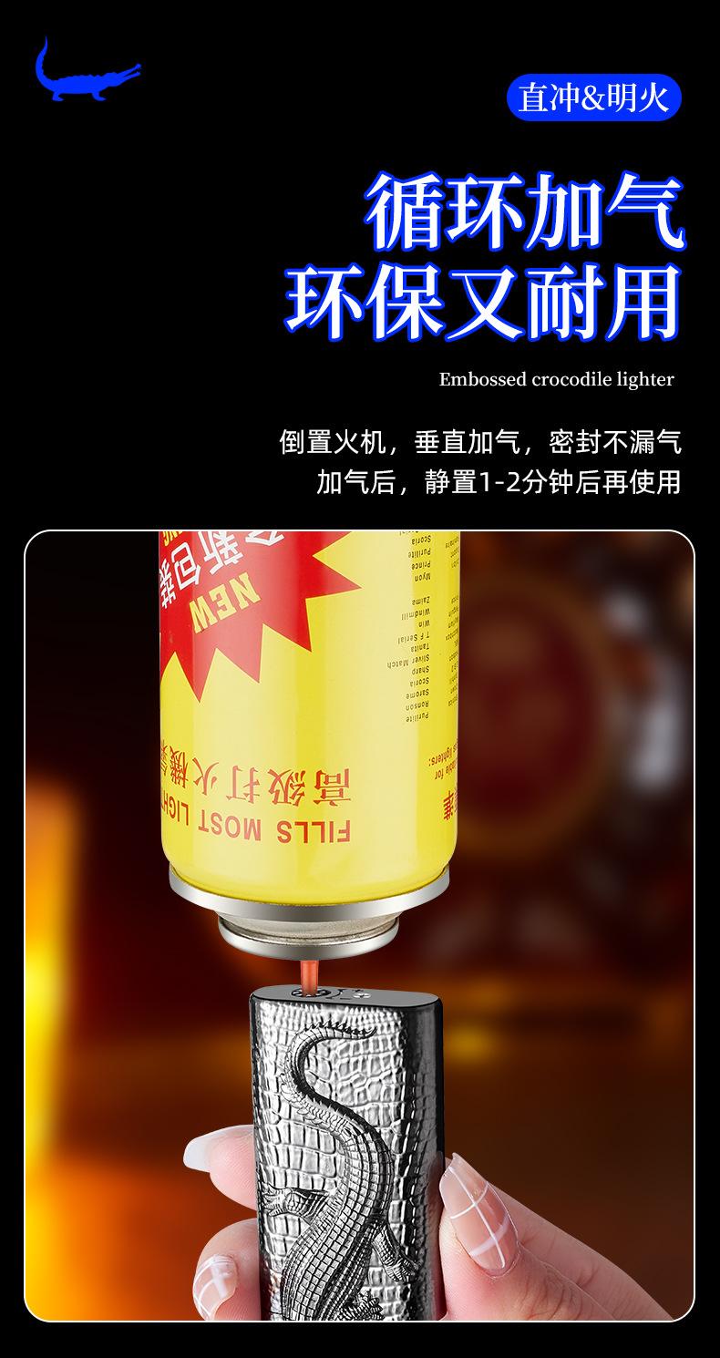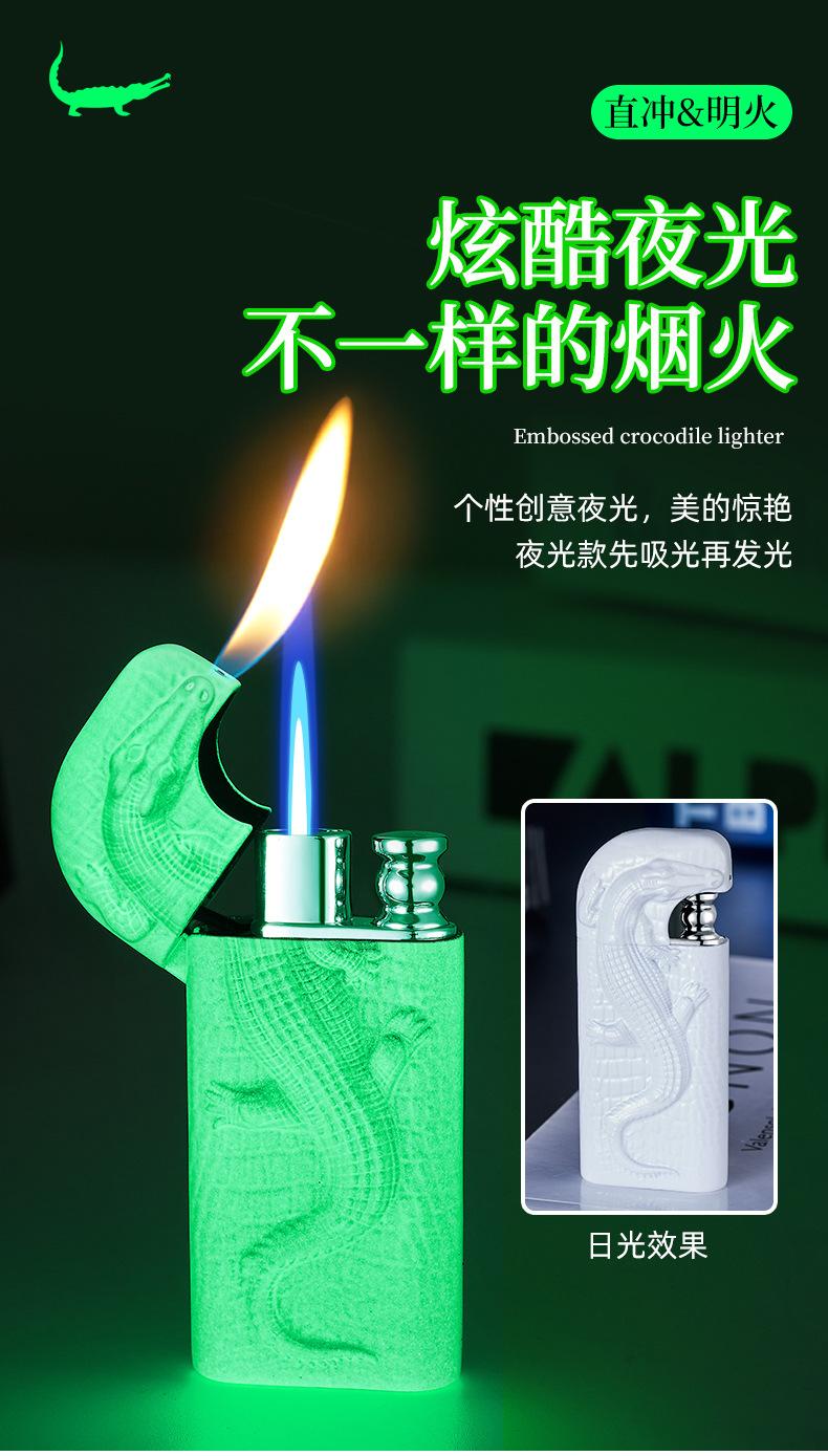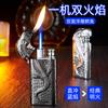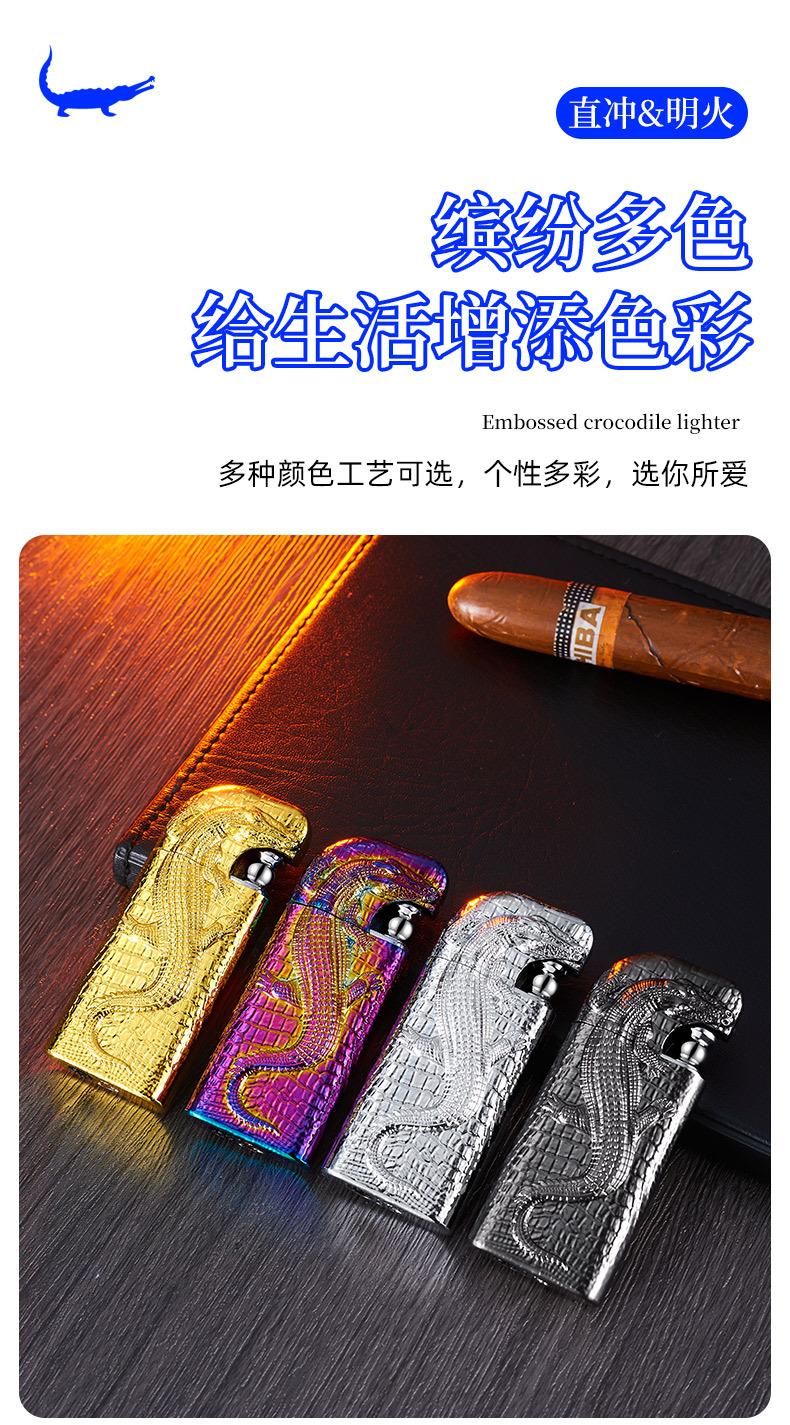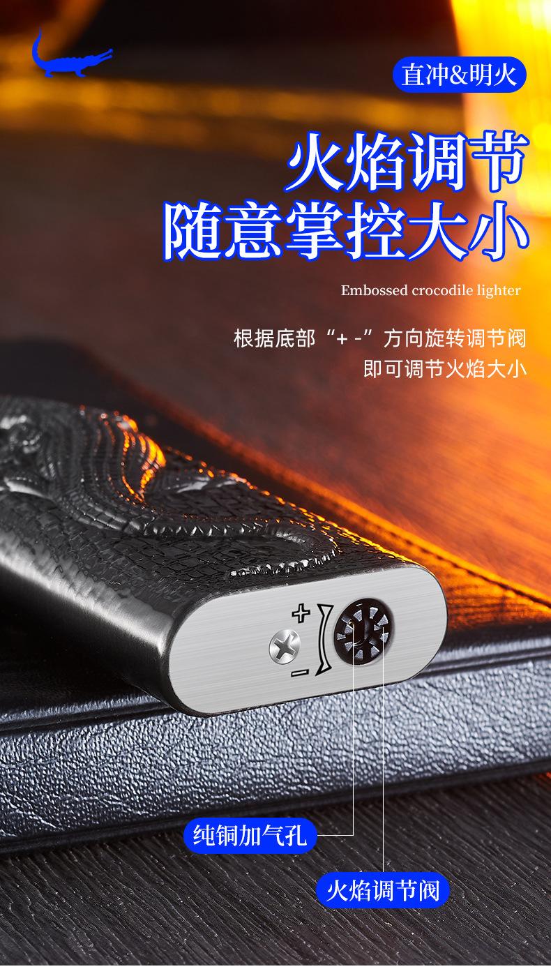 Encendedor inflable de metal con forma de cocodrilo en relieve tridimensional creativo, doble fuego, perforación directa, conversión a fuego abierto, encendedor de regalo para hombres
