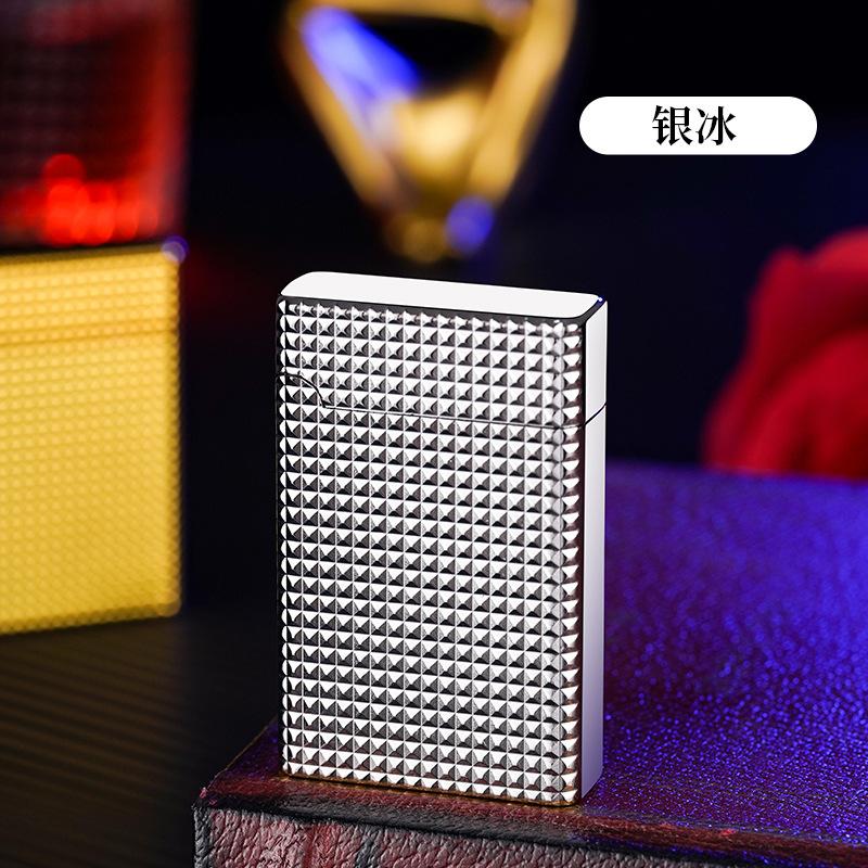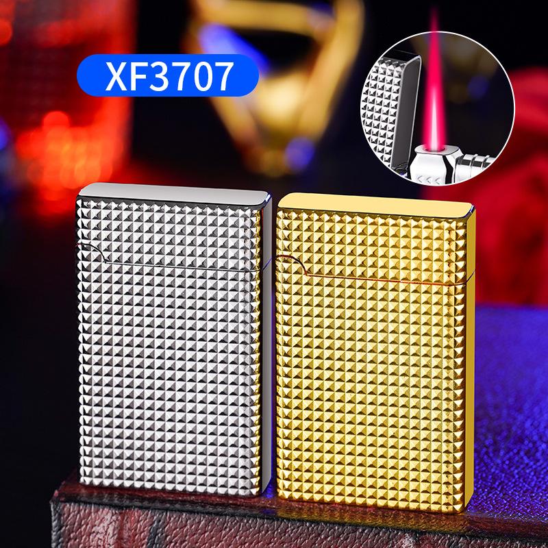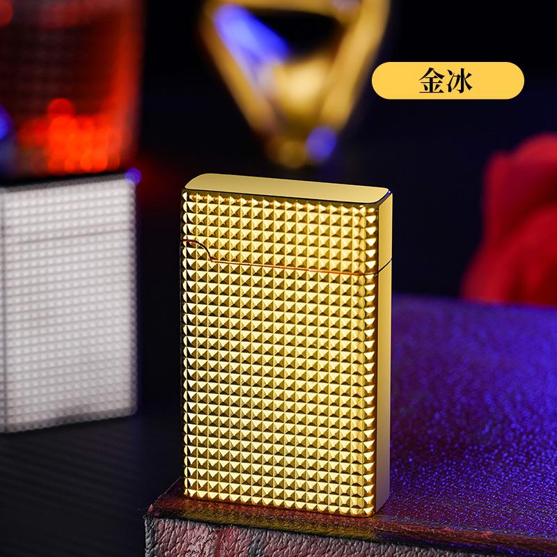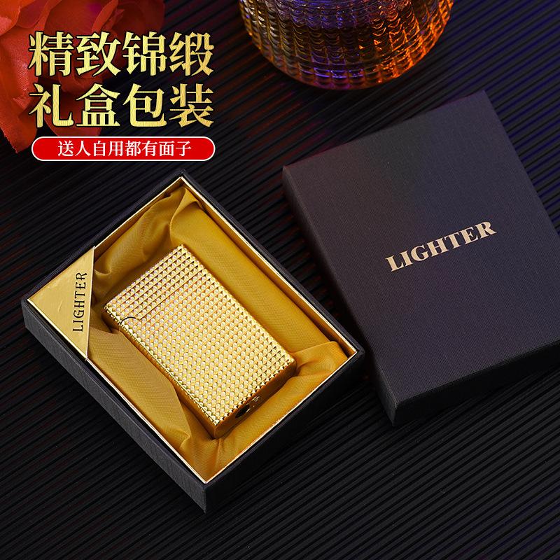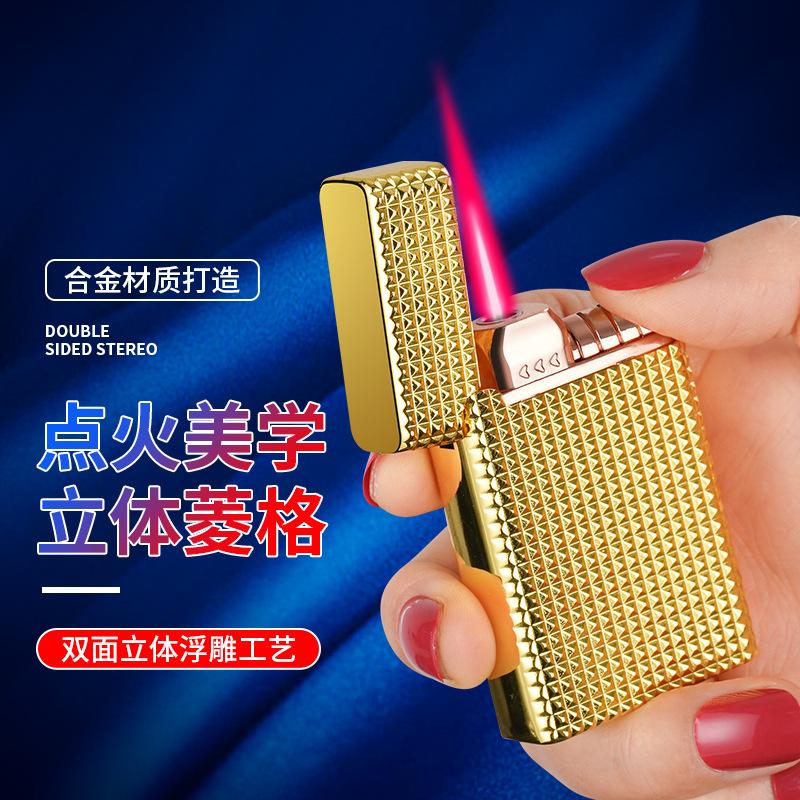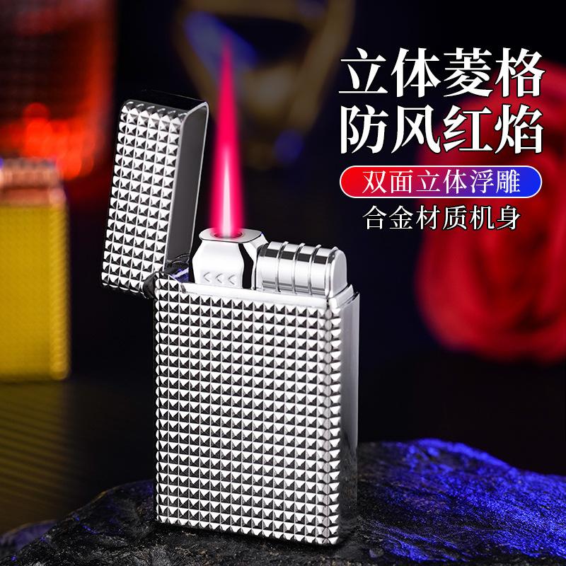 Encendedor inflable a prueba de viento de llama roja cuerpo de aleación relieve tridimensional de diamante a doble cara encendedor de cigarrillos para exteriores transfronterizo caliente