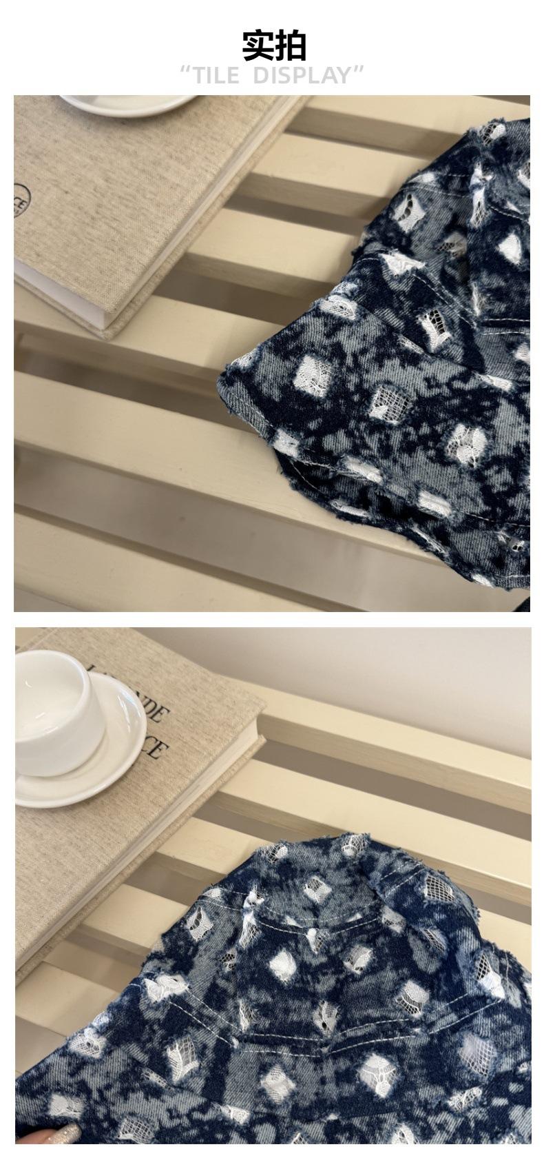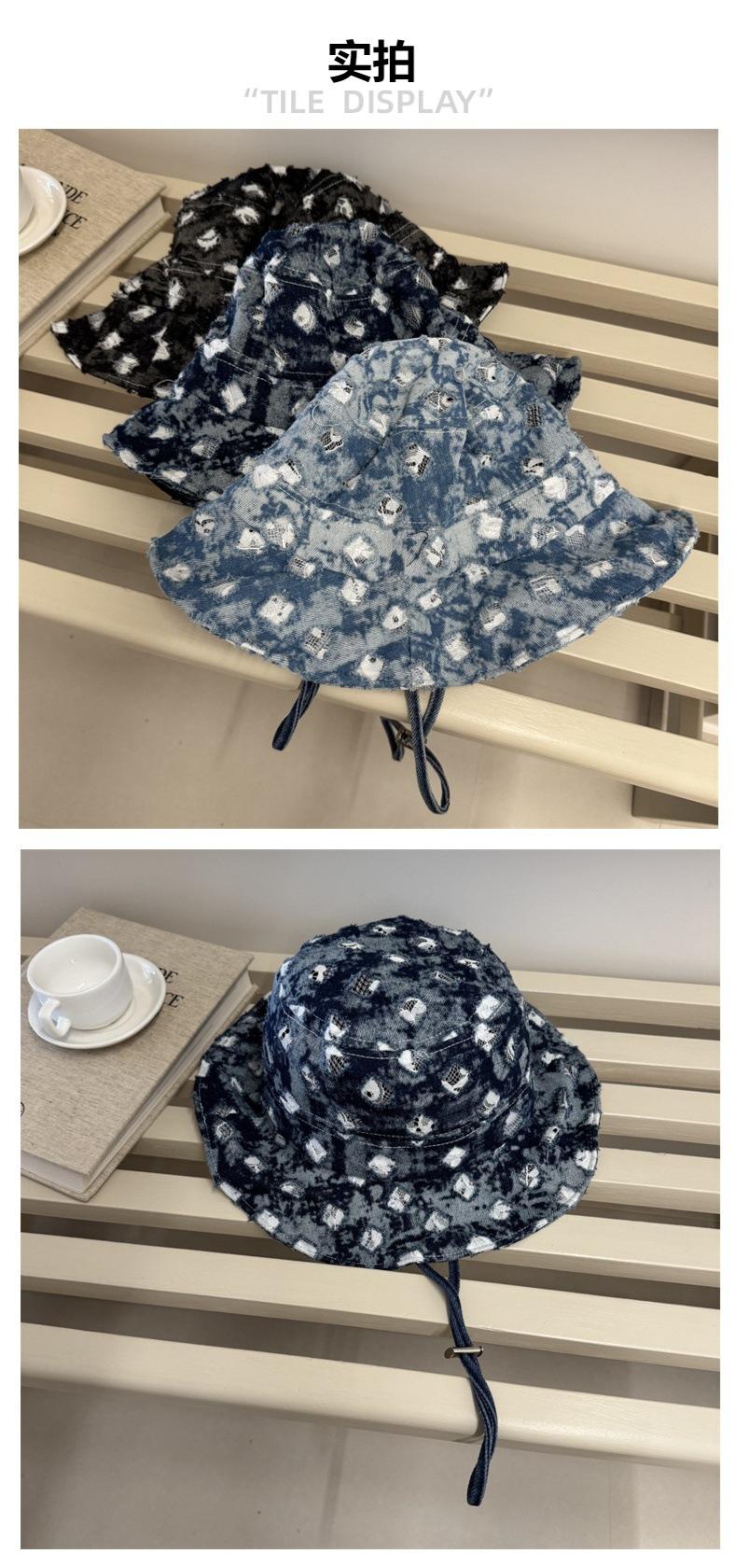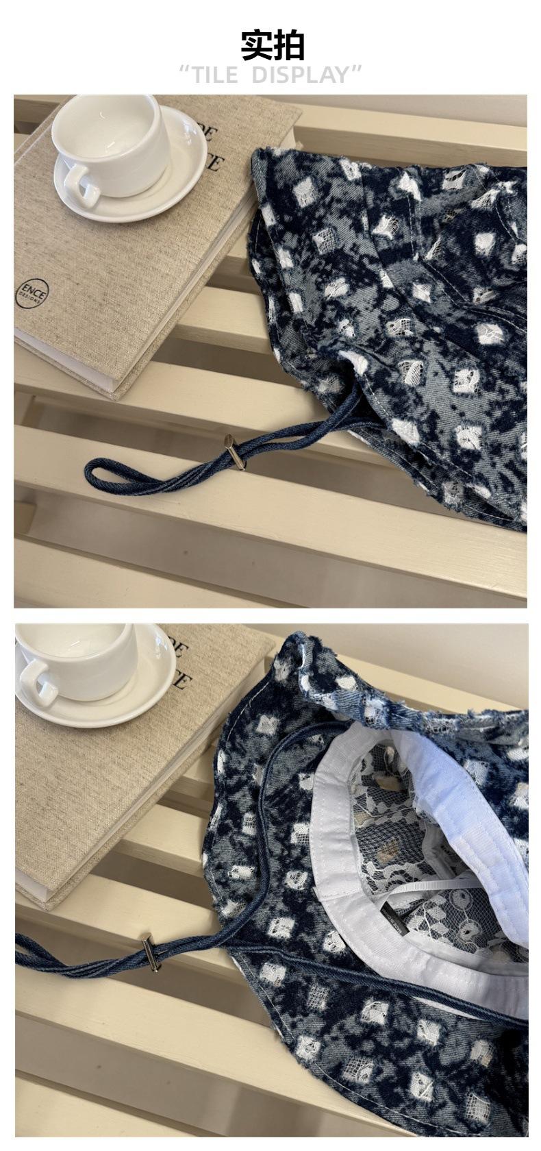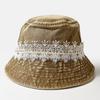 Sombrero de Cubo de Mezclilla con Encaje de Nicho Estilo Japonés Roto para Mujer, Delgado Casual Versátil para Primavera y Verano, Sombrero Cloche con Protección Solar