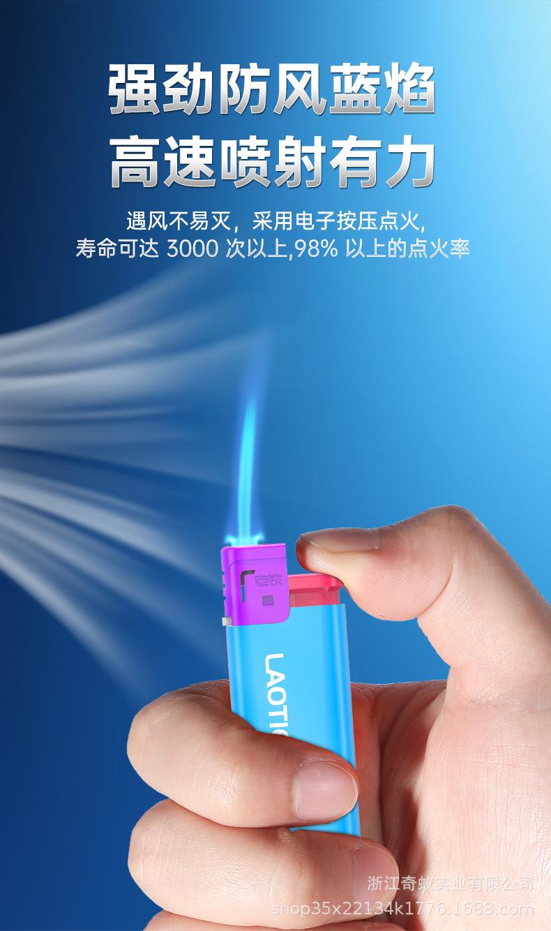 Encendedor a prueba de viento de llama azul de aspecto genial desechable inflable impresión publicidad ventas directas de fábrica supermercado mayoreo