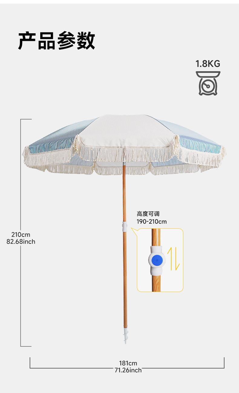 Paraguas de Sol para Exterior Personalizado Transfronterizo con Flecos a Rayas para Jardín, Lugar Escénico, Grande para Exterior, Playa, Columna Central, Sombrilla para Patio