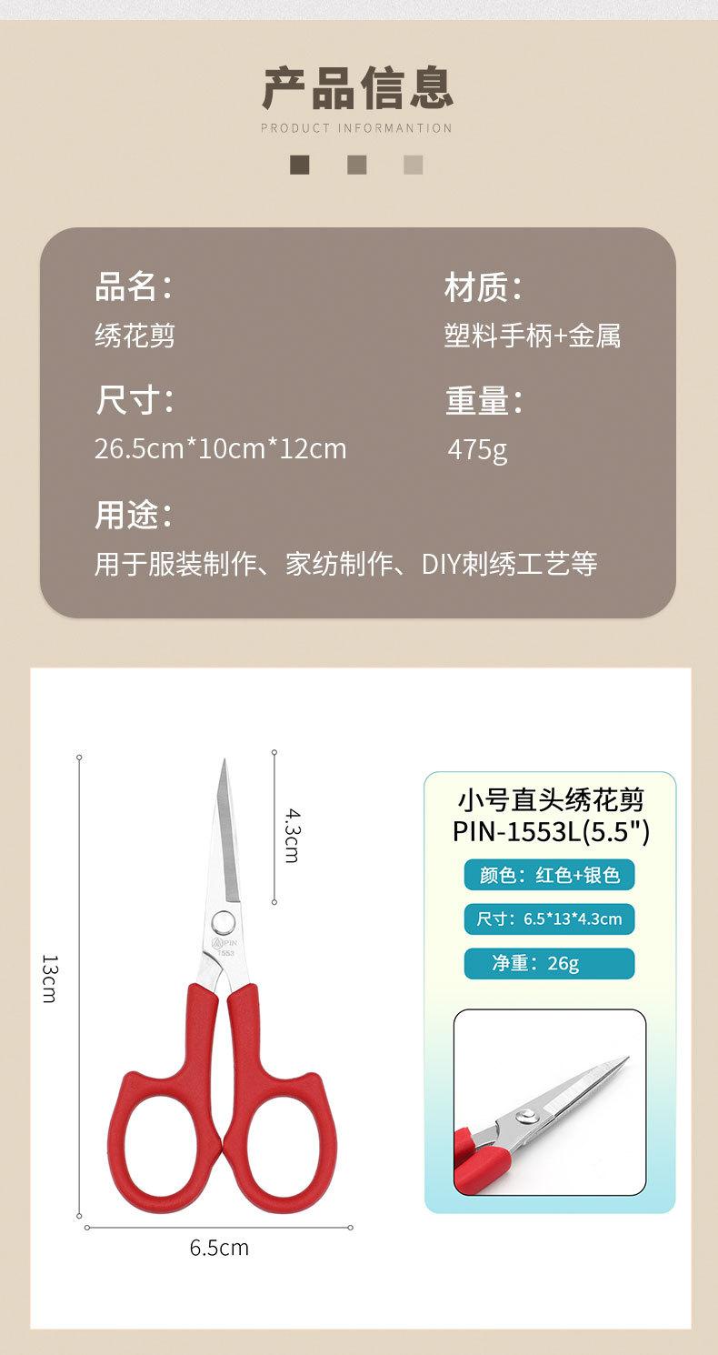 Tijeras de Bordado de Cabeza Recta Pequeña PIN-1553L(5.5")