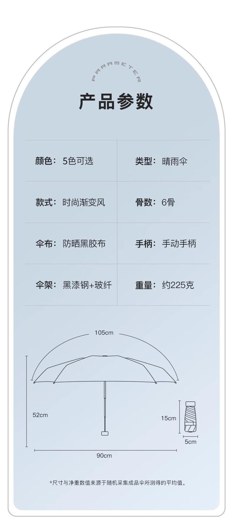 Sombrilla de Sol para Mujer Protector Solar UV Parasol Sombrilla Protectora del Sol y Lluvia Mini Plana 60% Plegable Degradado Pequeña y Portátil