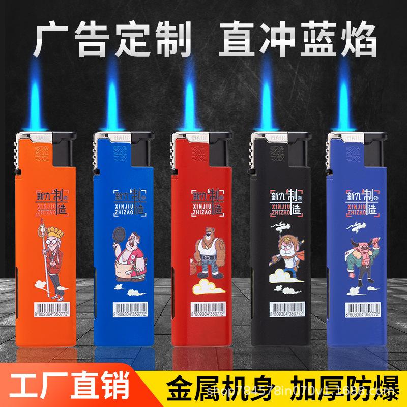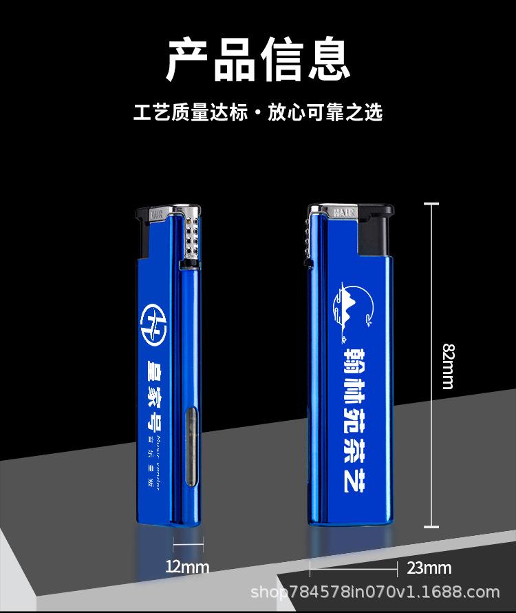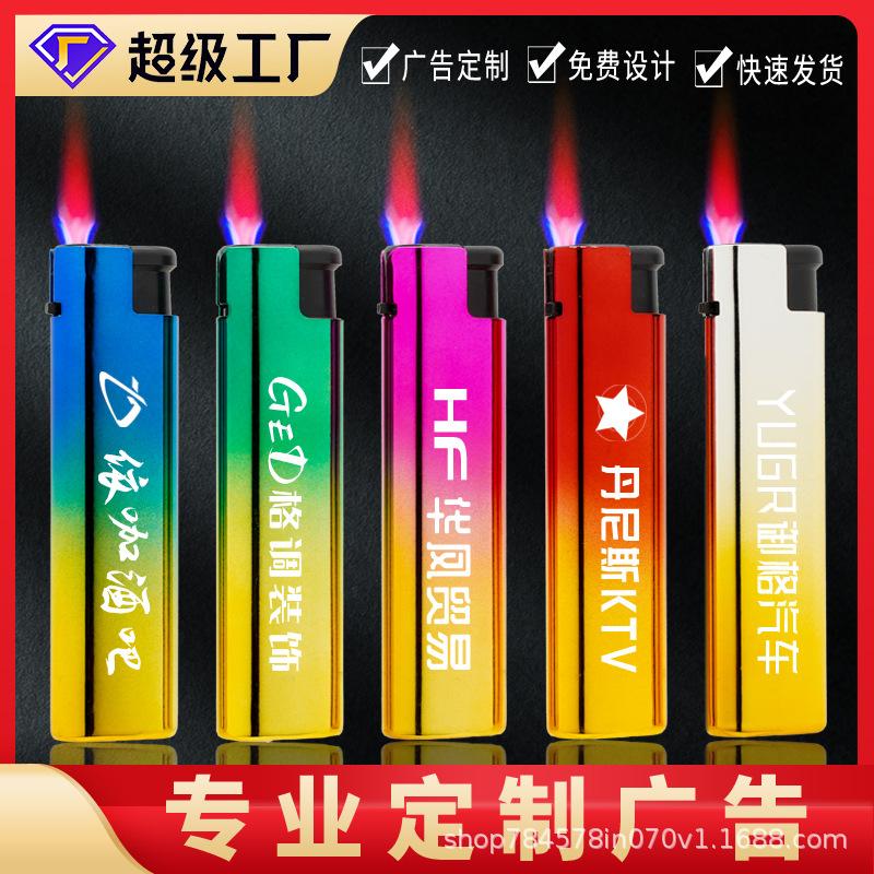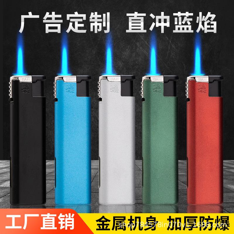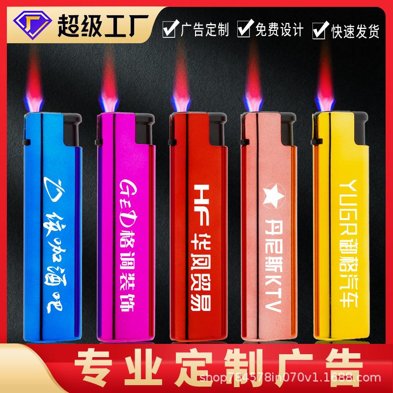 Compra Encendedor de metal de alta gama a prueba de viento recto inflable de llama azul personalizado con logotipo impreso personalizado publicidad encendedor al por mayor al por mayor en Joom.pro