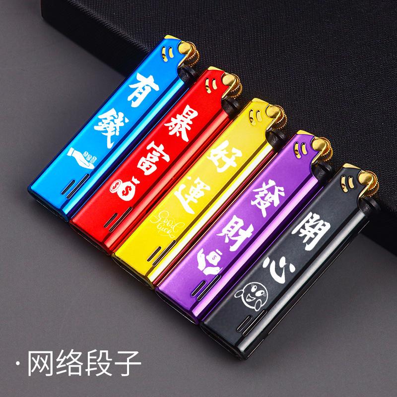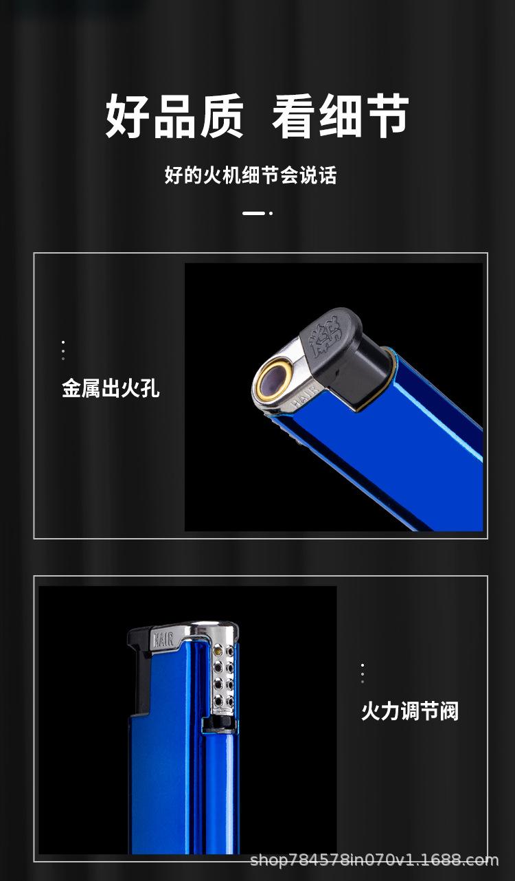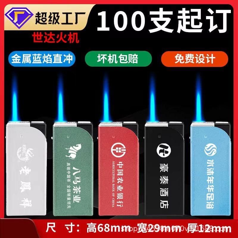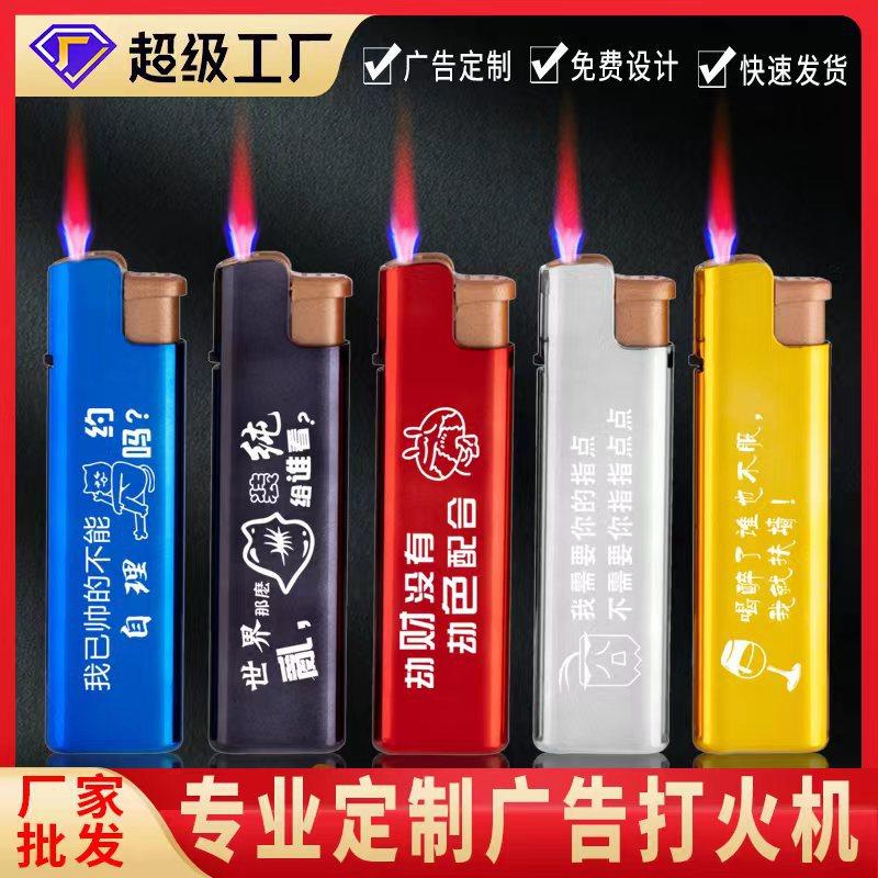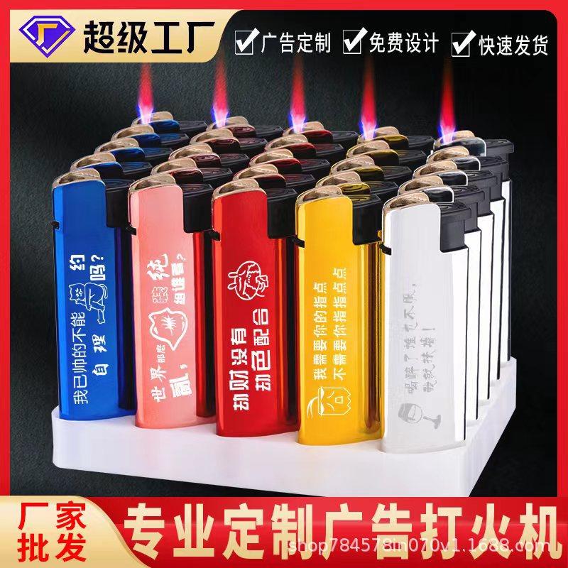 Compra Encendedor de metal de alta gama a prueba de viento recto inflable de llama azul personalizado con logotipo impreso personalizado publicidad encendedor al por mayor al por mayor en Joom.pro