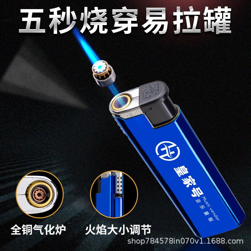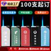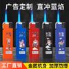 Encendedor de metal de alta gama a prueba de viento recto inflable de llama azul personalizado con logotipo impreso personalizado publicidad encendedor al por mayor