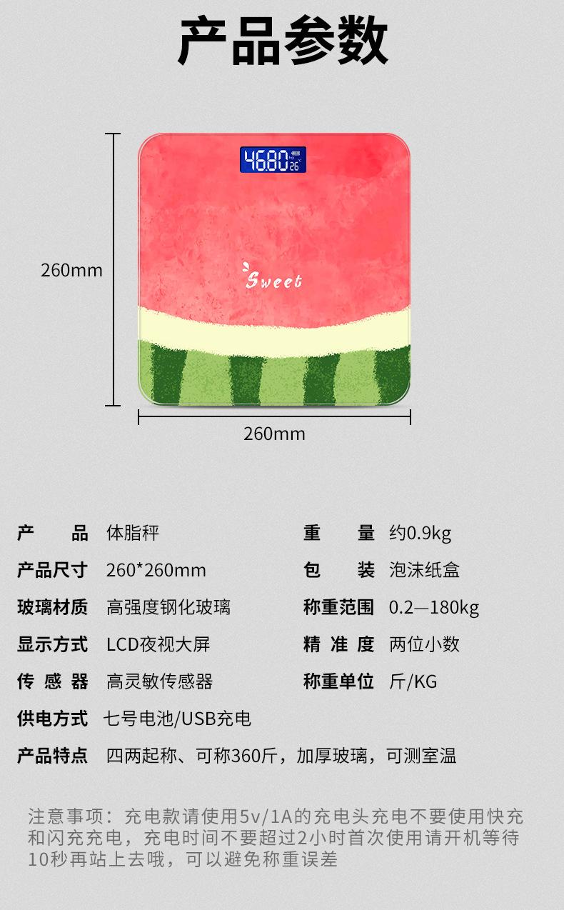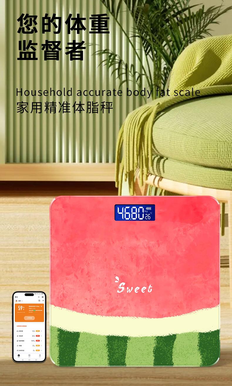 Báscula Electrónica Bluetooth de Verano Sandía Hogar Báscula de Grasa Corporal Fábrica de Origen Báscula Corporal Inteligente Precisa Báscula de Grasa Corporal de Dibujos Animados