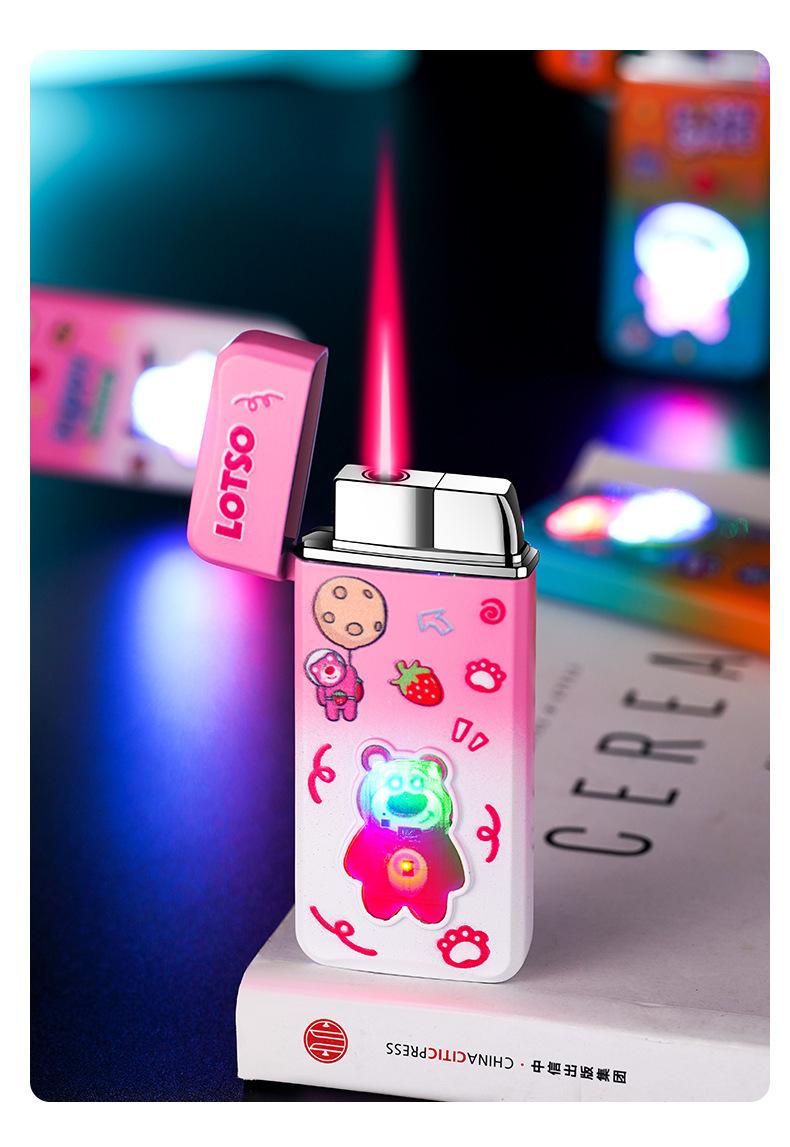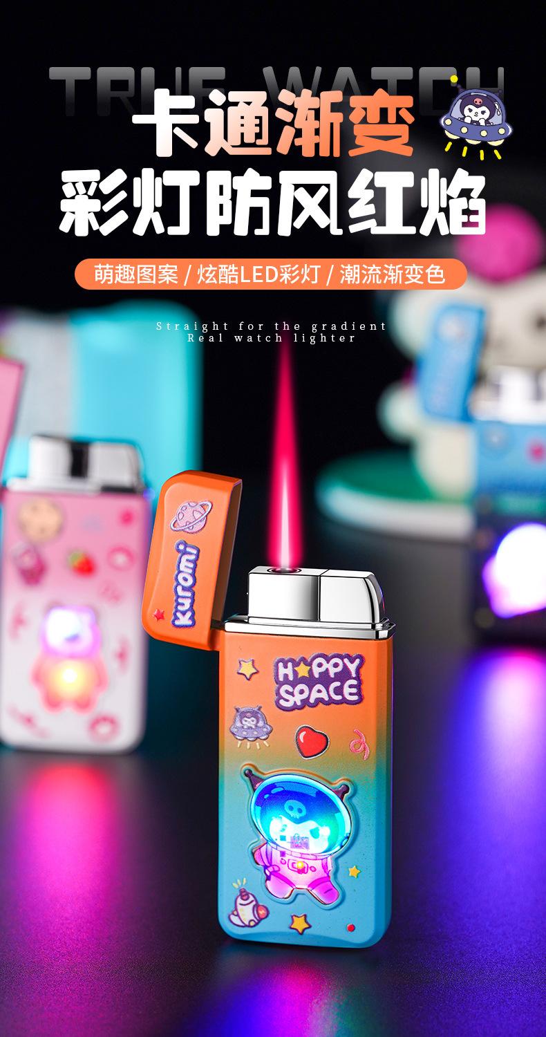 Encendedor inflable a prueba de viento con luces de colores frescos y de aspecto atractivo, con tamaño de llama ajustable y lazo, ideal para enviar a tu novio.