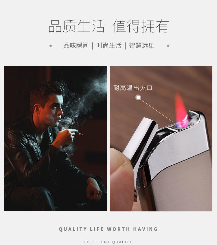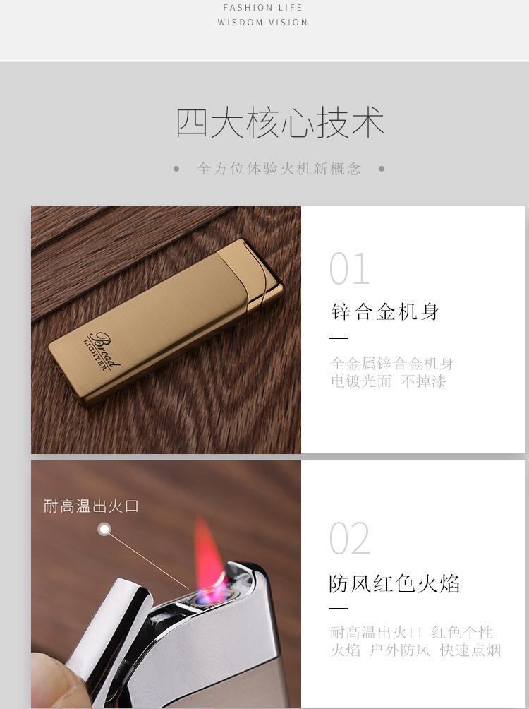Encendedor de Gas Personalizado Creativo de Alta Temperatura Llama Roja a Prueba de Viento Cuerpo Metálico Ultradelgado Portátil Personalizado