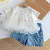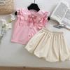 Conjunto para Niñas Verano 2025 Nuevo Top Chaleco Irregular Shorts de Encaje Conjunto de Dos Piezas de Princesa Coreana Transfronterizo