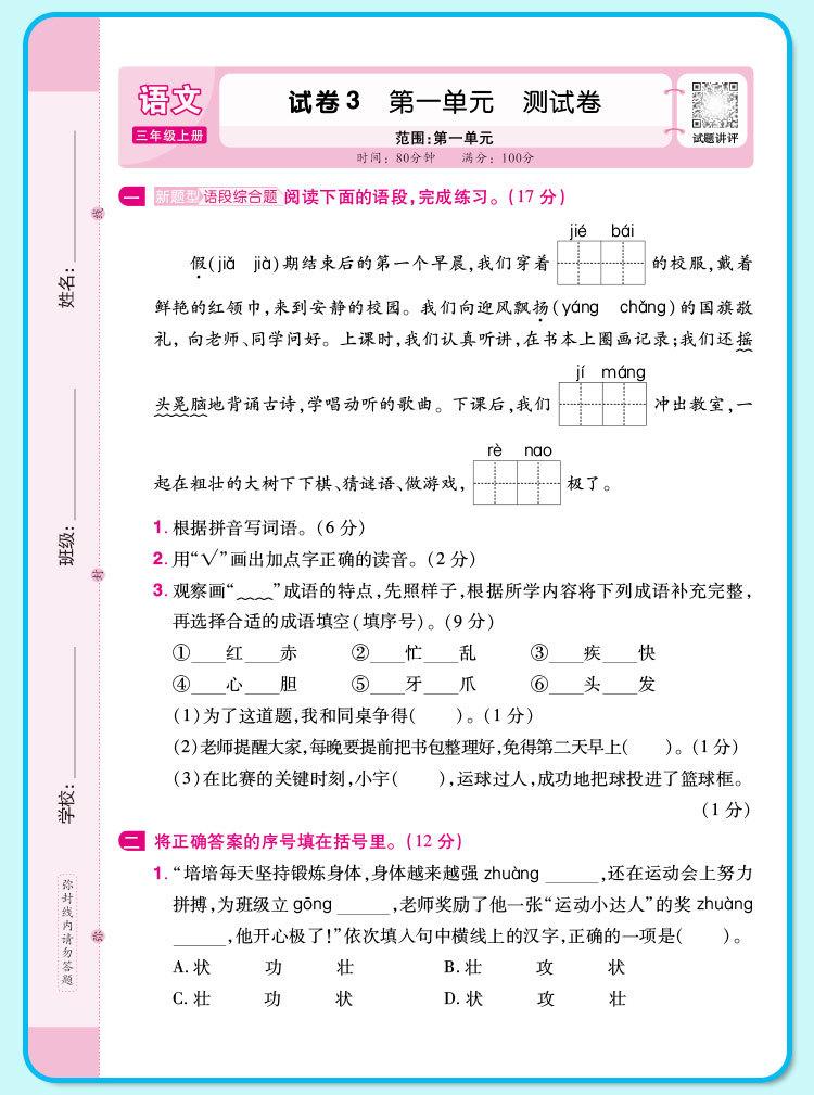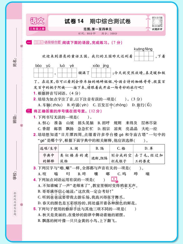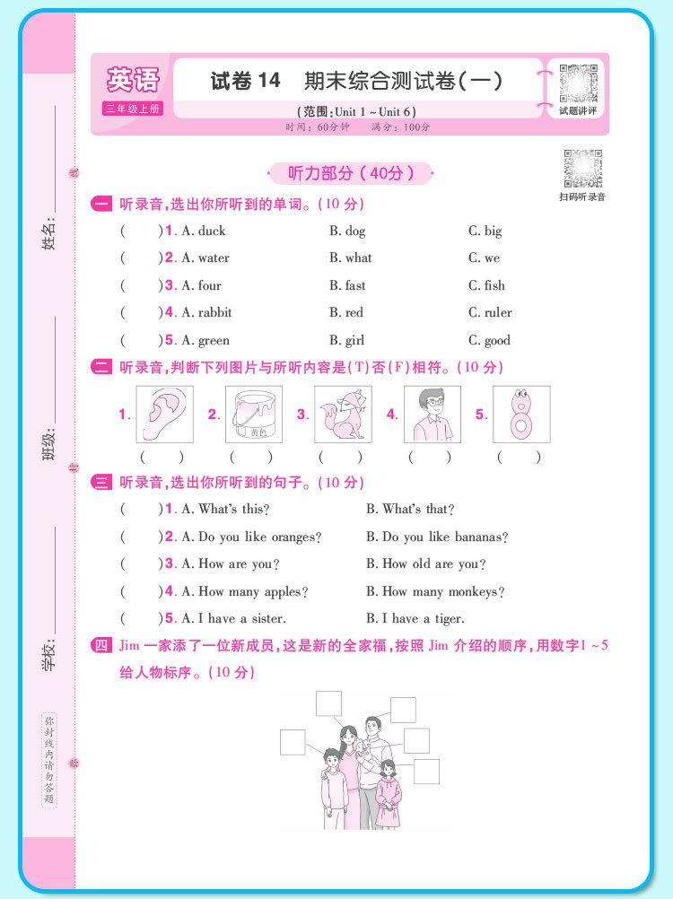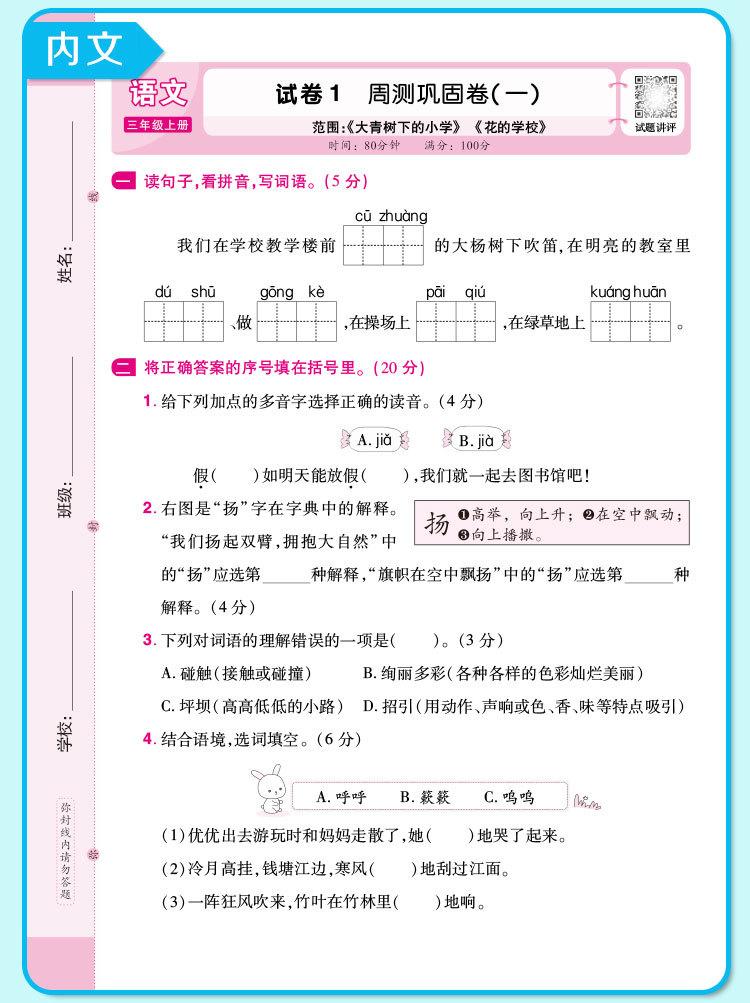 Crayon bear peiyou famous paper weekend test chinese language first grade volume 1 people's education press, C...