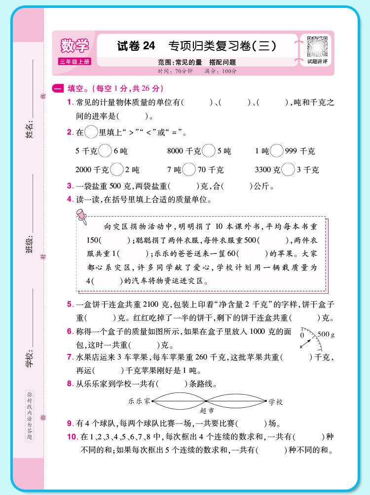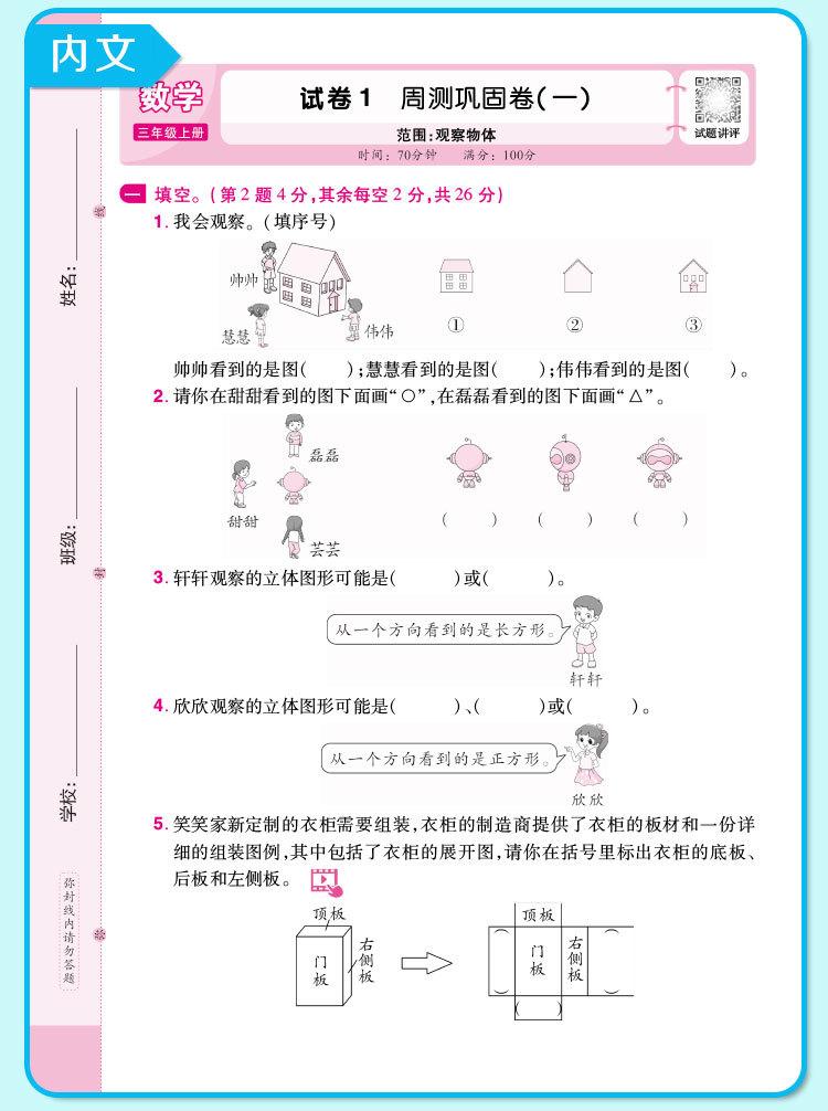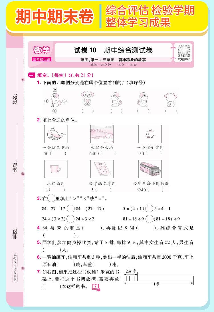 Crayon bear peiyou famous paper weekend test mathematics for fifth graders volume 1 jiangsu education edition