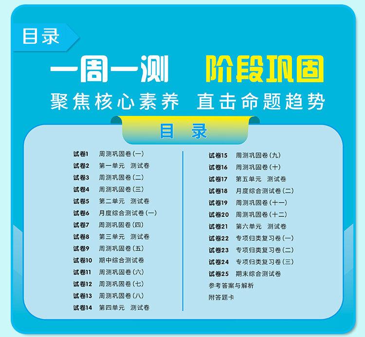 25 Nuevos Exámenes de Fin de Semana para Grados Uno a Seis en Chino, Matemáticas, Inglés, Prensa de Educación Popular, Universidad Normal de Beijing, Educación de Jiangsu, Uno por Semana