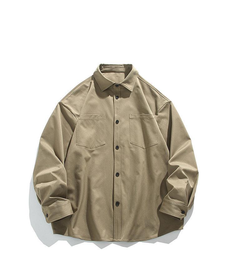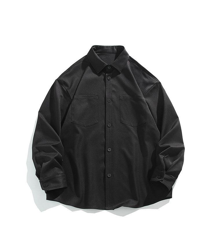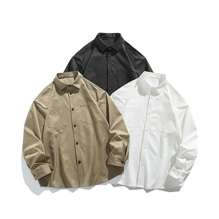 Compra 2025 Otoño Nuevo Color Sólido Peso Pesado Camisa Manga Larga Hombre Trendy Minimalista Talla Extra Suelta Camisa Top Ropa Exterior al por mayor en Joom.pro