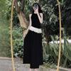 Traje de Alta Gama Chaleco Negro con Volantes Falda de Verano de Cintura Alta Falda Larga Estilo Francés Conjunto de Dos Piezas