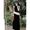 Compra Traje de Alta Gama Chaleco Negro con Volantes Falda de Verano de Cintura Alta Falda Larga Estilo Francés Conjunto de Dos Piezas al por mayor en Joom.pro