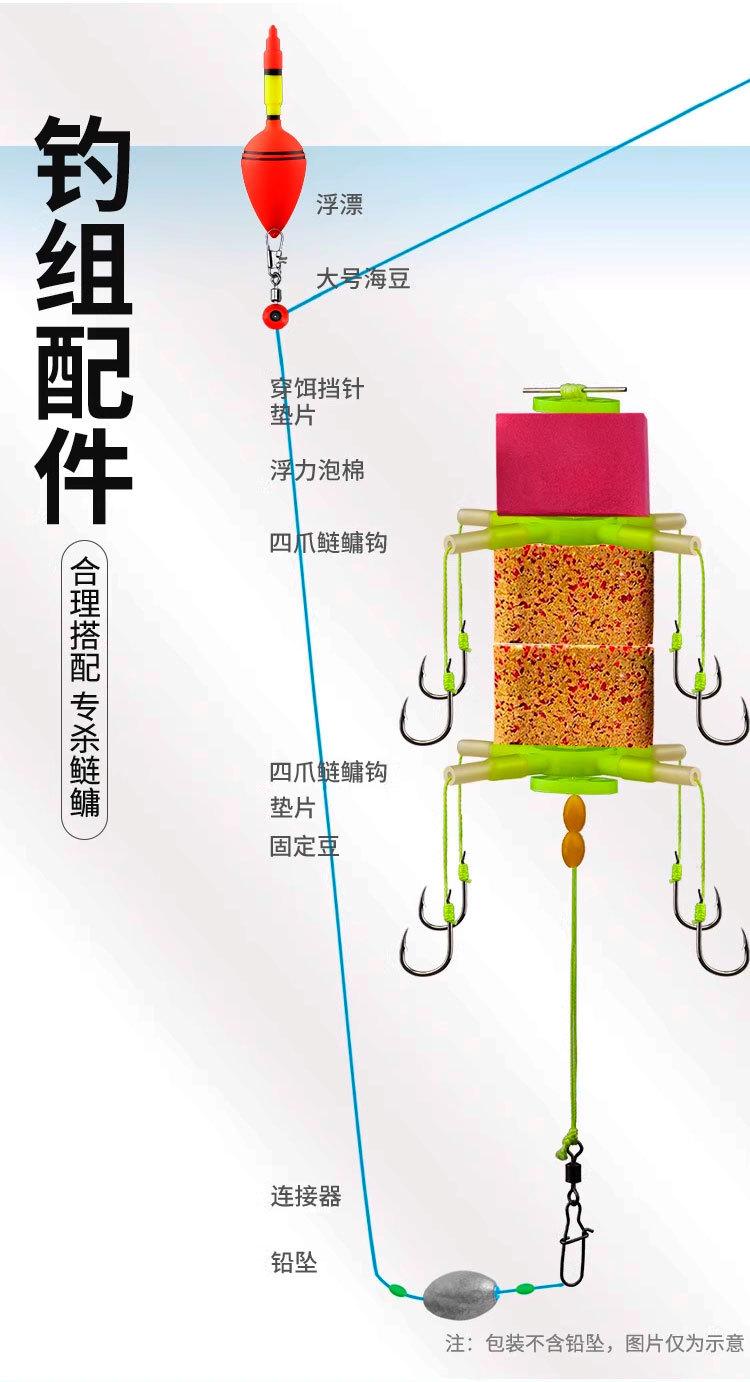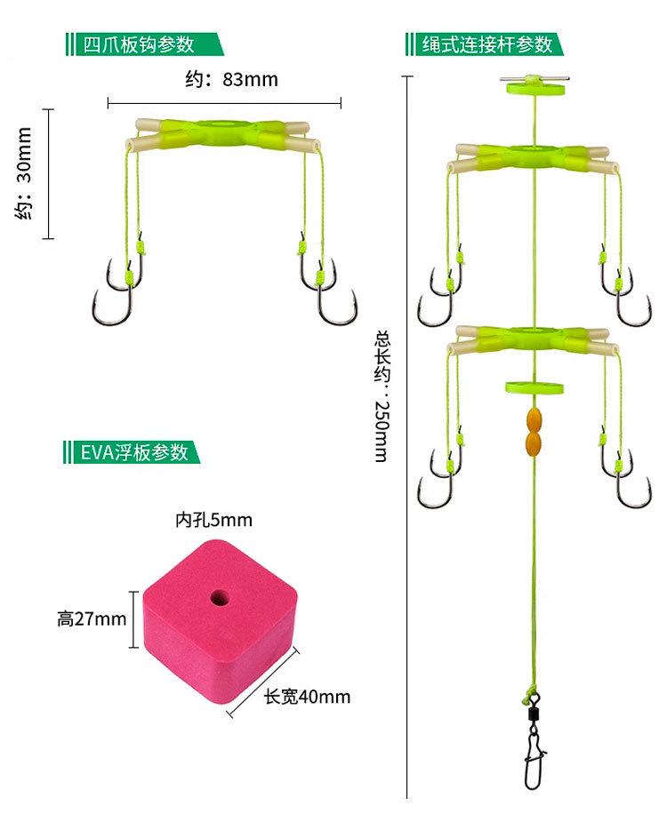 Grupo de pesca de anzuelo anti-fondo para carpa plateada y carpa cabezona, grupo de línea de pesca anti-fondo, caña de mar, flotador, anzuelo de aleta, grupo de pesca, traje de placa flotante cuadrada