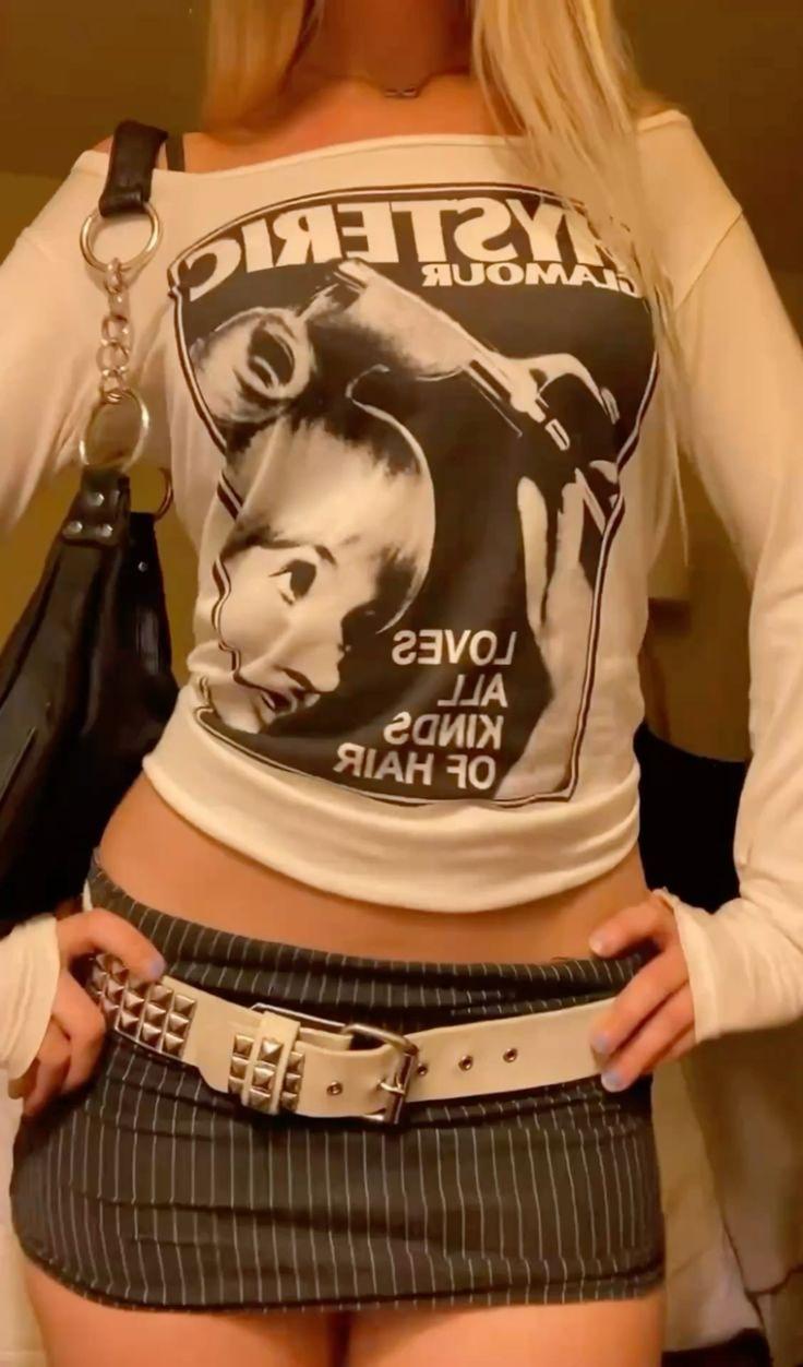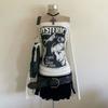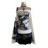 BM Americano Retro Un Hombro Borde Crudo Versátil Camiseta de Manga Larga Mujer bm Chica Picante Adelgazante Top Base
