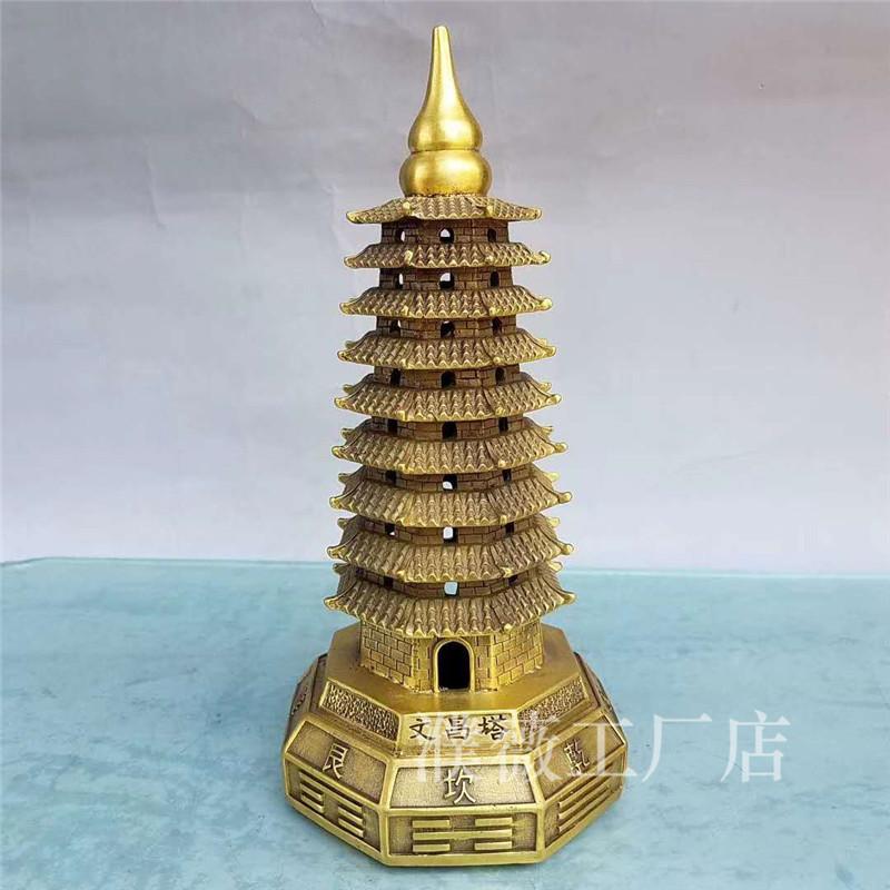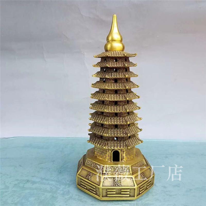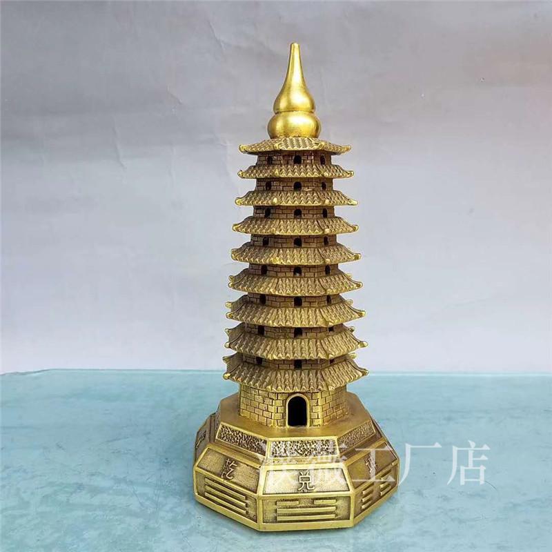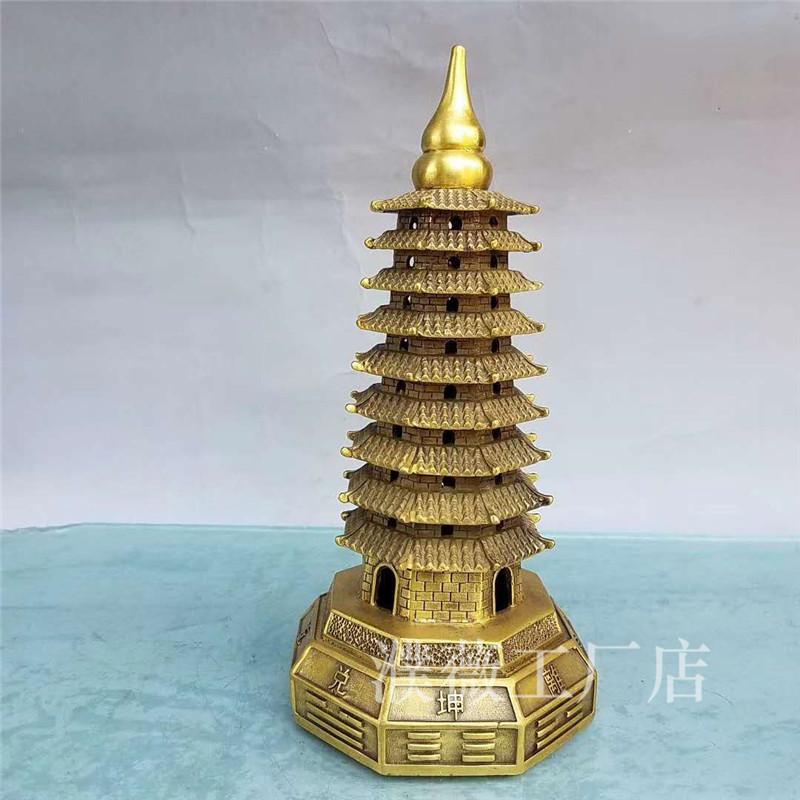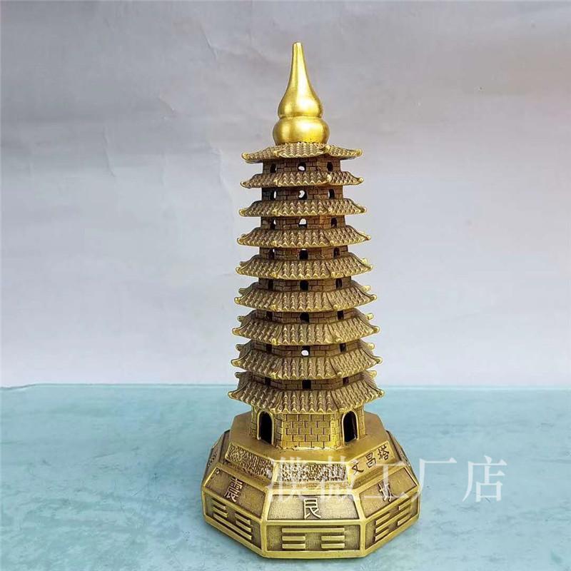 Decoración de Torre Wenchang de latón, decoración de escritorio de estudio de nueve pisos, artesanías