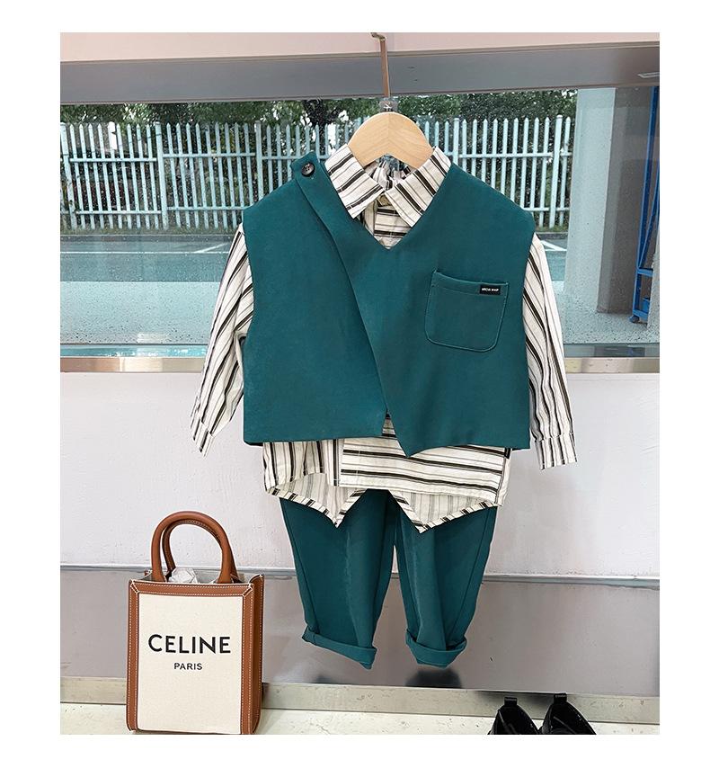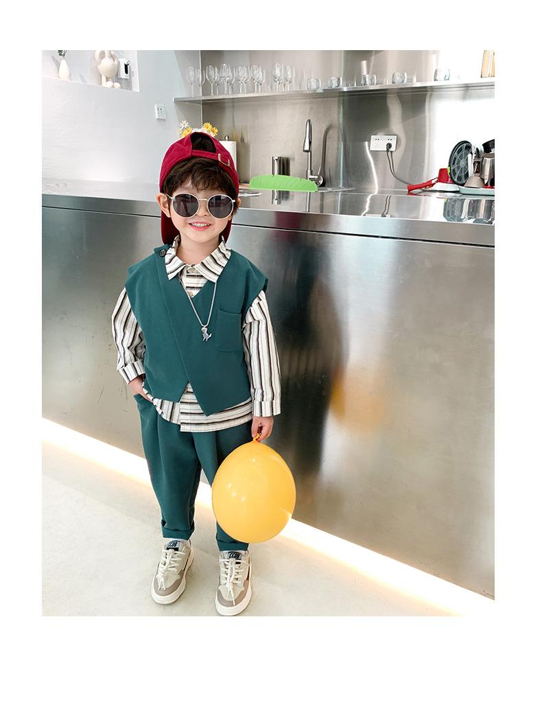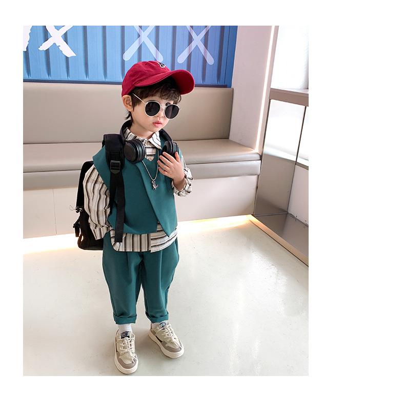 Conjunto para Niños Otoño 2025 Nuevo Estilo Coreano Conjunto para Niños Pequeños Estilo Británico Niños Medianos y Grandes Conjunto de Traje con Chaleco