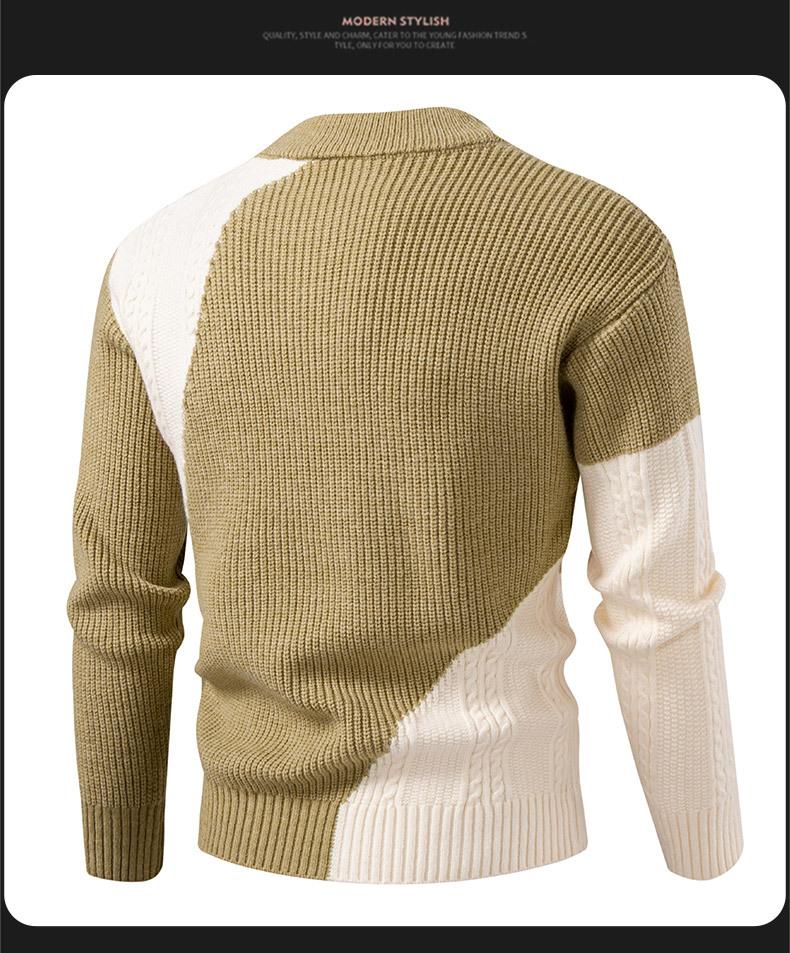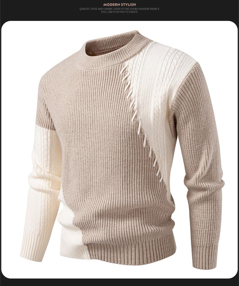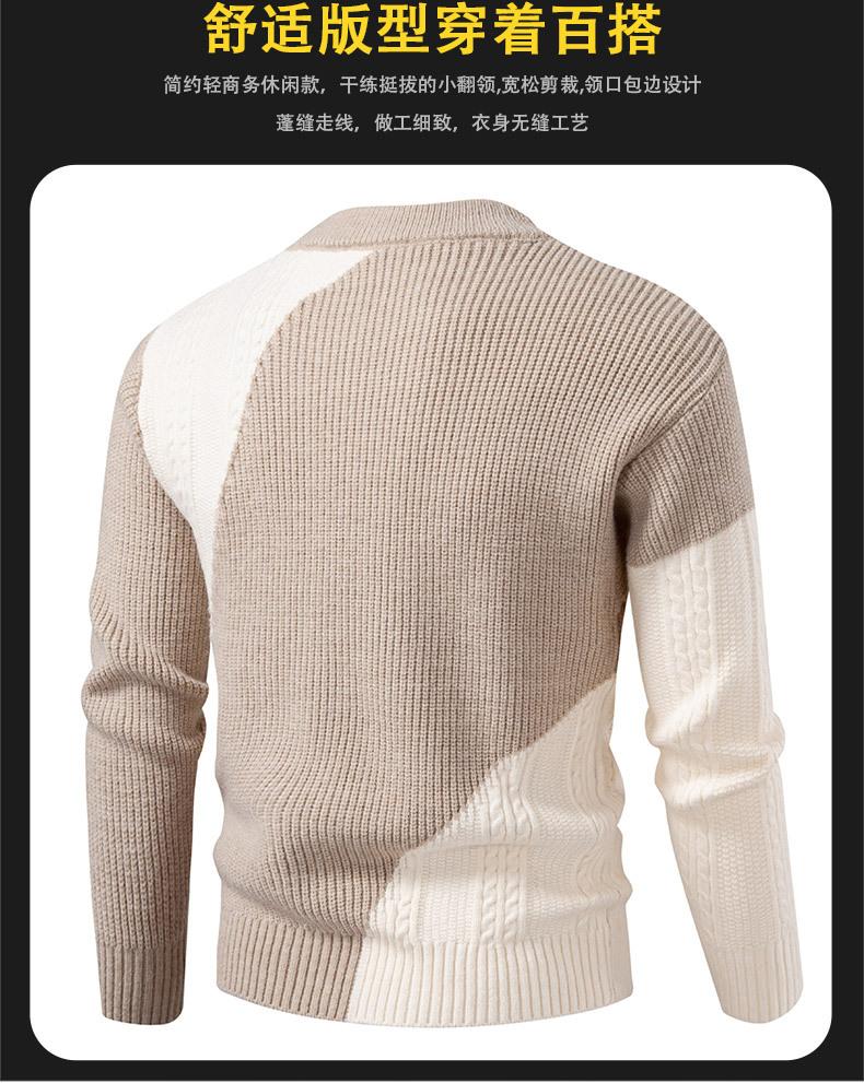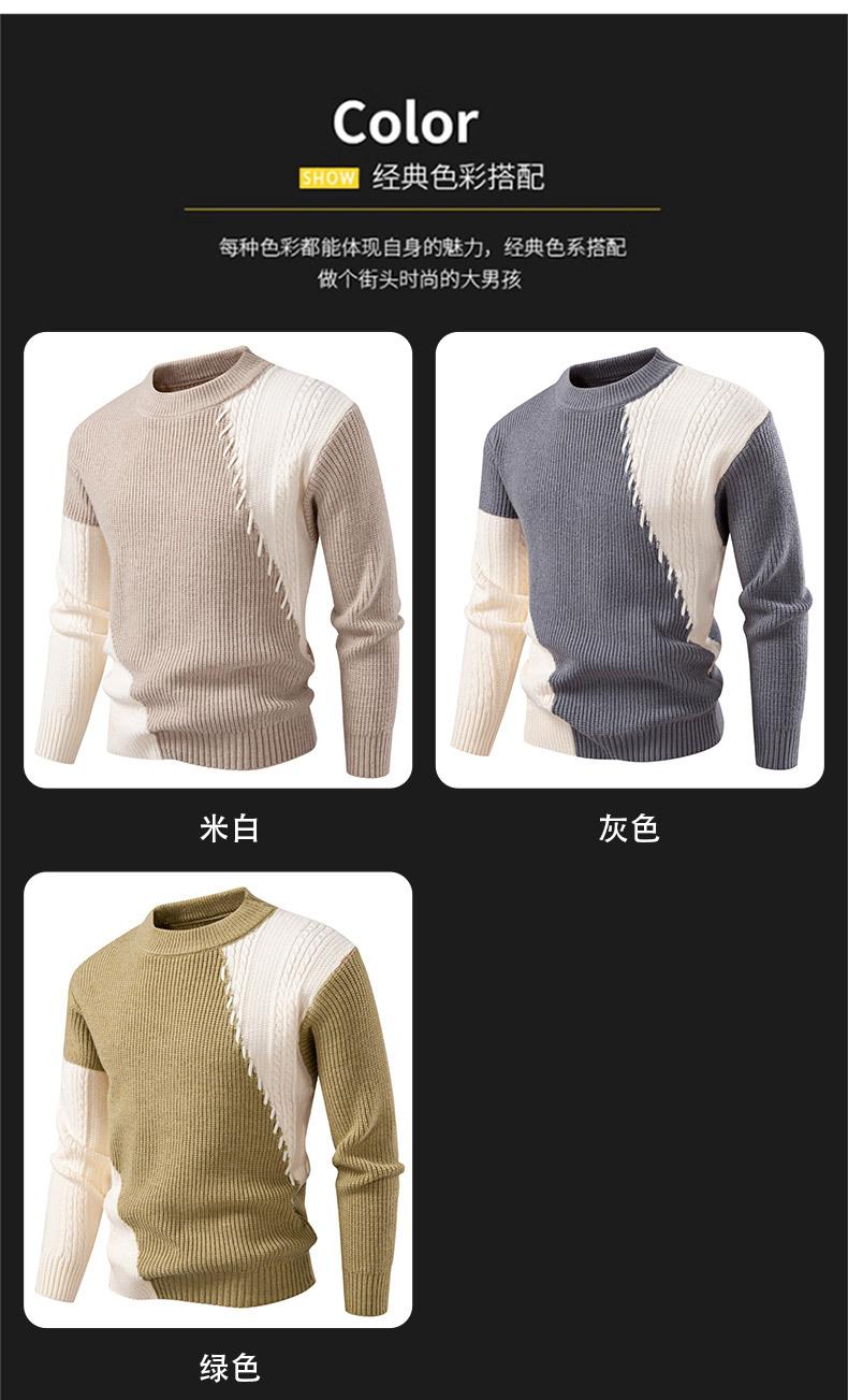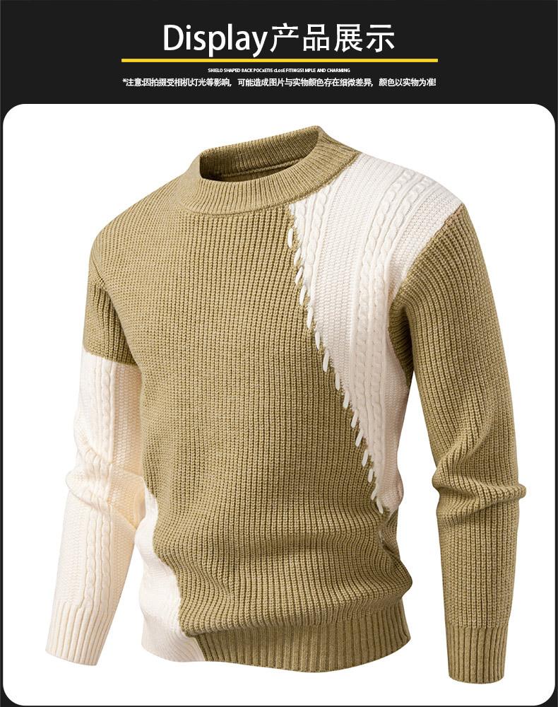 Suéter Pulóver Nuevo Transfronterizo para Hombre Otoño/Invierno 2025 Bloque de Color de Moda Cuello Redondo Casual Suéter Tejido Cálida Capa Base