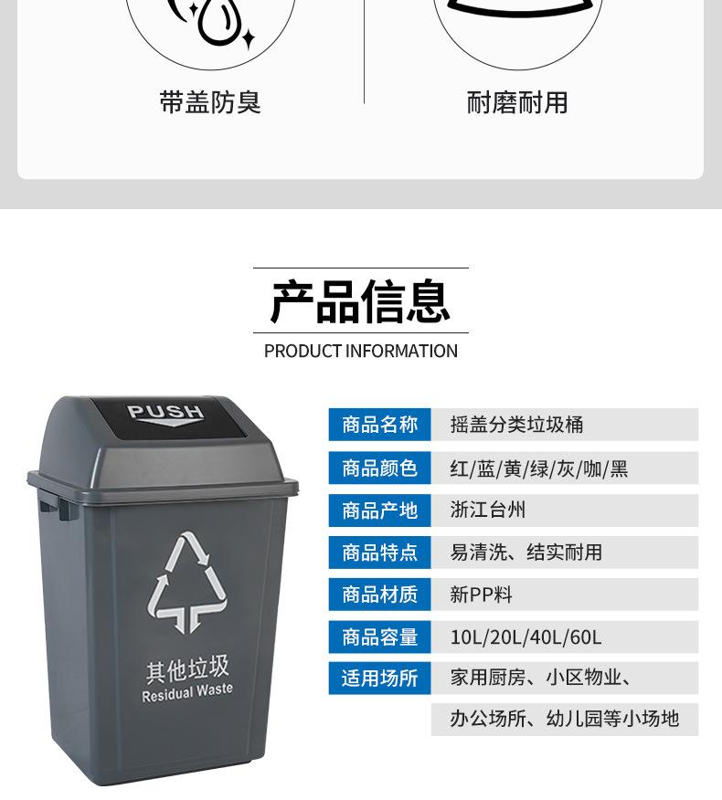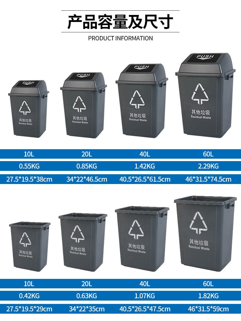 Escuela Hotel Comercial 40L Cubo de Basura de Plástico con Tapa Oscilante Grande Cocina Clasificación Cubo de Basura con Tapa Sanitación Personalización