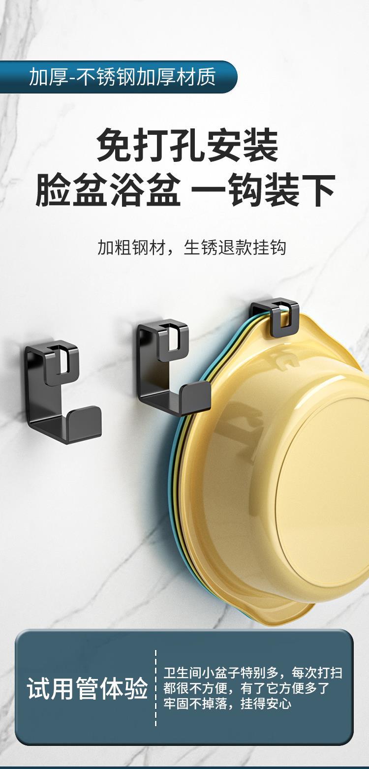 Estante para lavabo de acero inoxidable sin perforaciones, estante de almacenamiento de pared para baño, almacenamiento para lavabo colgante de baño, gancho multifuncional para el hogar