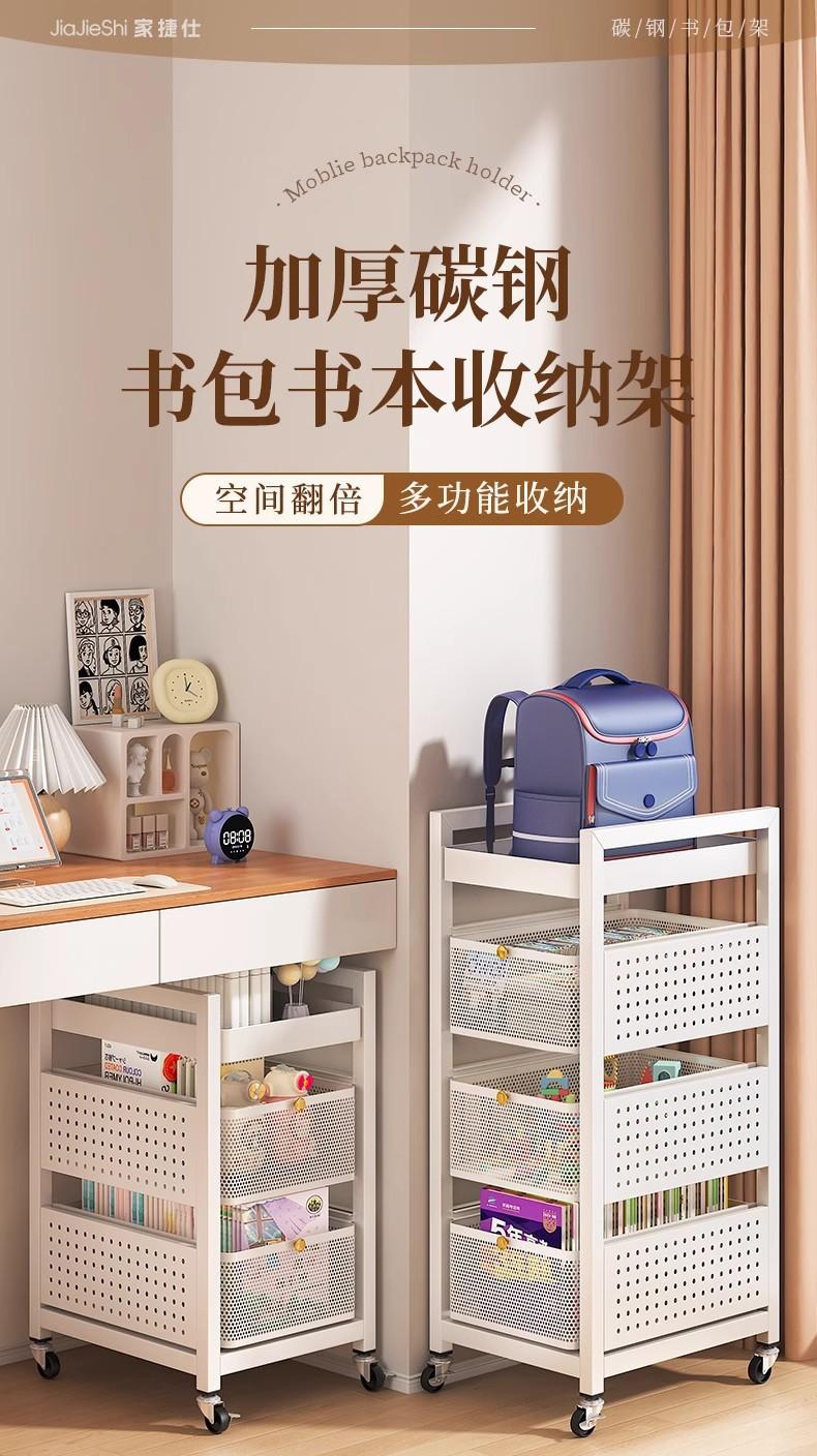 Estante de almacenamiento para mochilas, carrito pequeño móvil para mochilas, de pie multicapa, debajo de la mesa, para el hogar, estante para libros, estantería