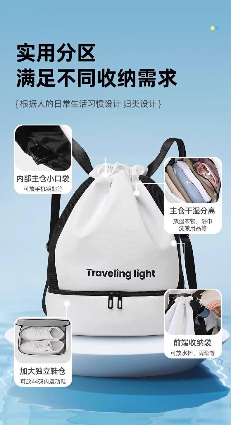 Drawstring model - Haze Blue [Dry and wet separation/increased capacity/independent shoe compartment]