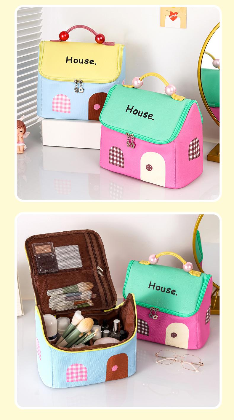 Bolsa de Cosméticos Portátil de Aspecto Elegante, Bolsa de Aseo Linda, Bolsa de Almacenamiento de Cosméticos, Popular Bolsa de Almacenamiento de Viaje con Forma de Casita